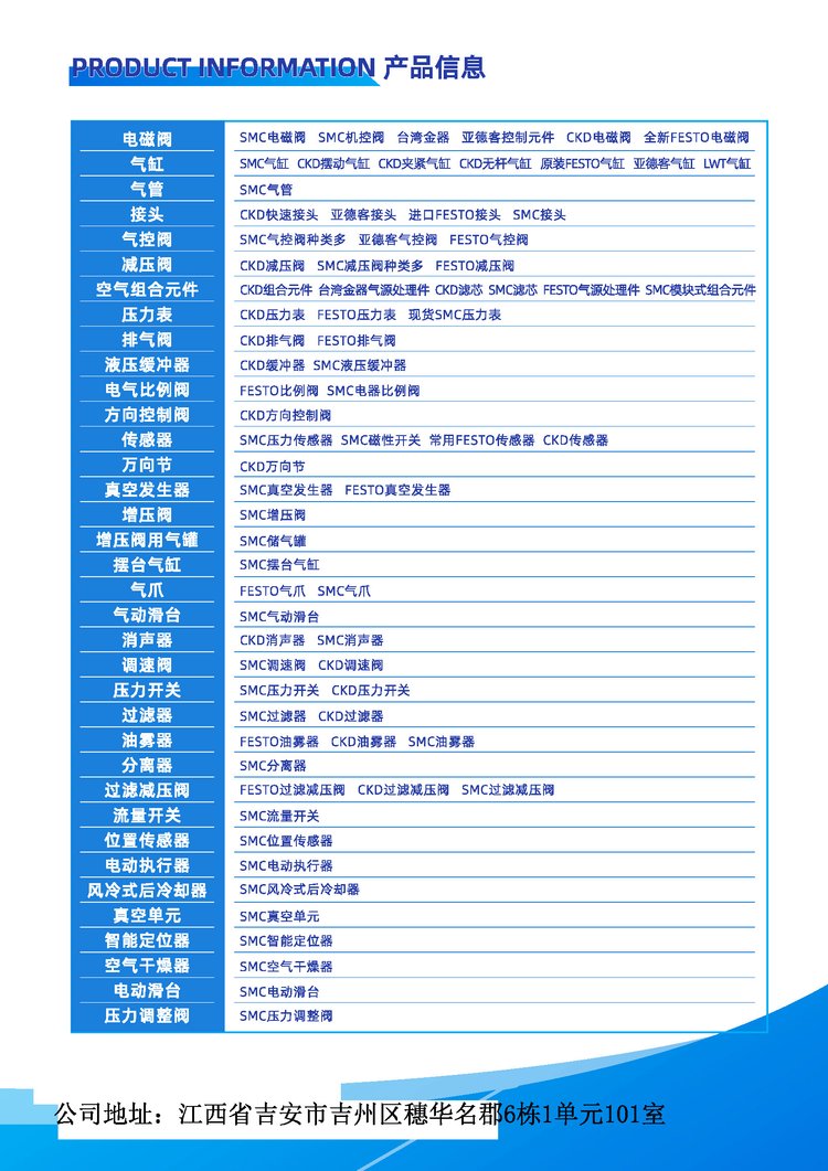 主要是做日本SMC/ CKD, 德国FESTO,亚德客 等品牌 也支持国产定制哦!