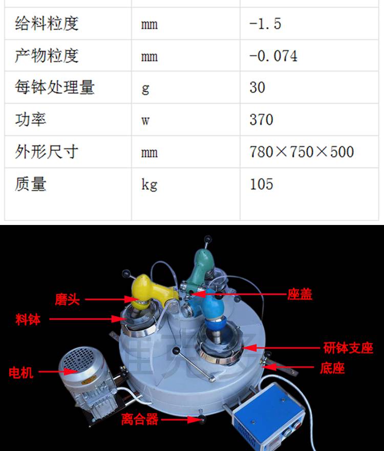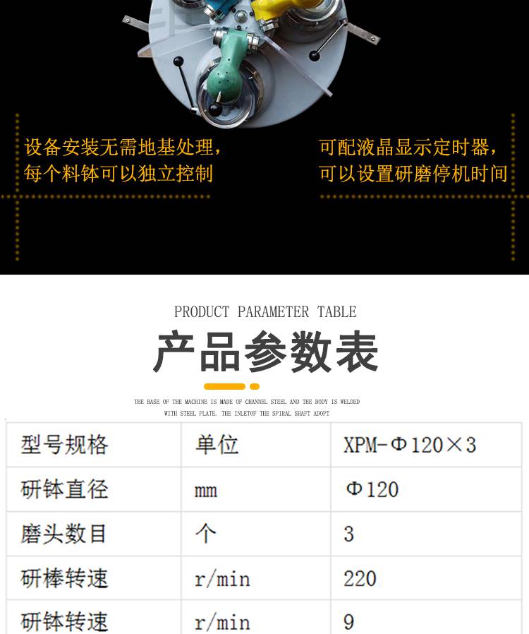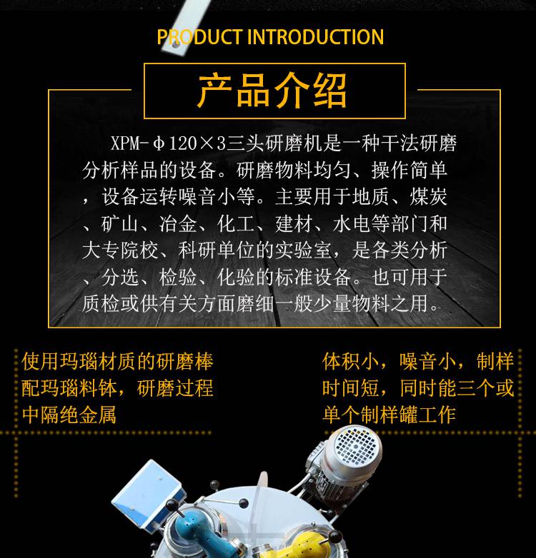 实验室小型粉磨矿机械设备 XPM120*3三头研磨机 玛瑙碳酸钙磨样机