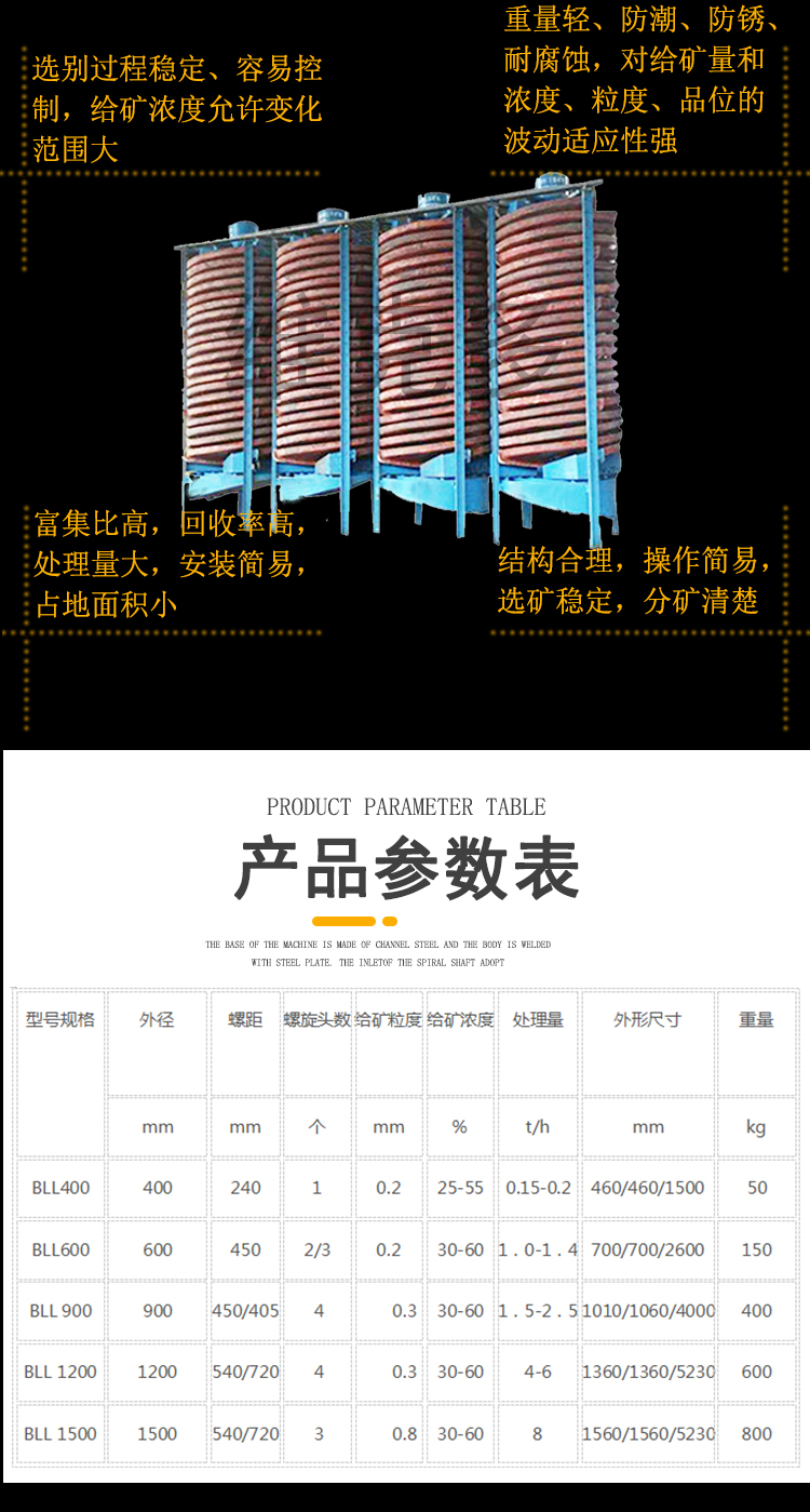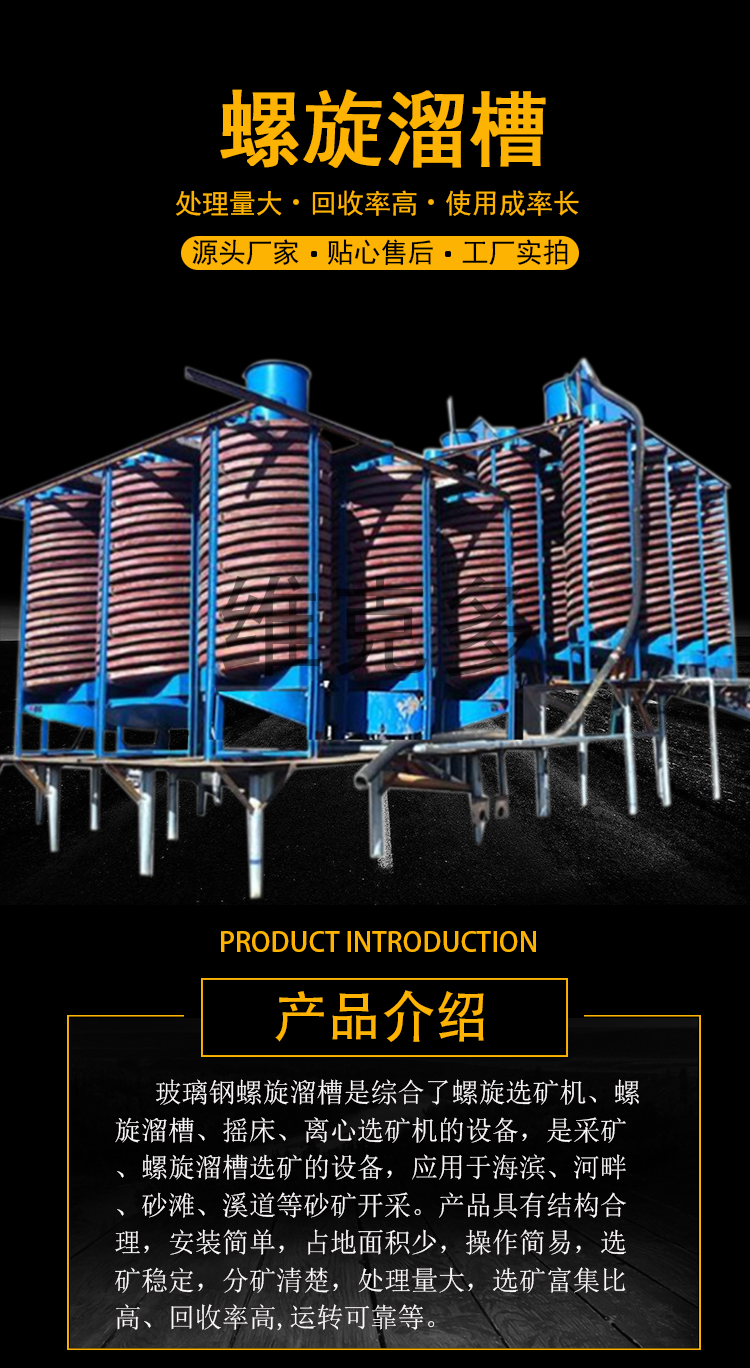 尾矿重选螺旋溜槽 选煤泥玻璃钢材质 实验室用旋转溜槽