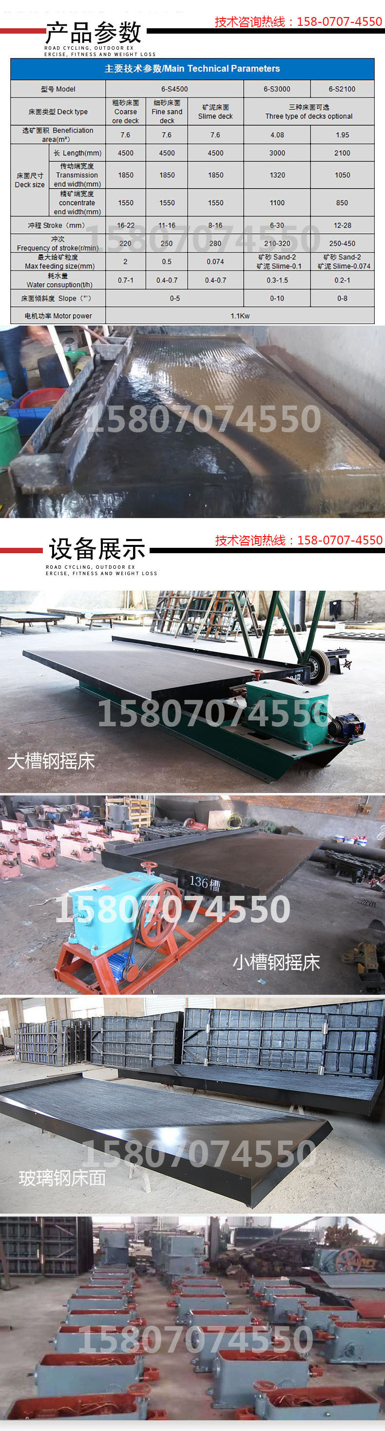 选矿摇床、球磨机、螺旋溜槽、选矿毛毯机、浮选机
