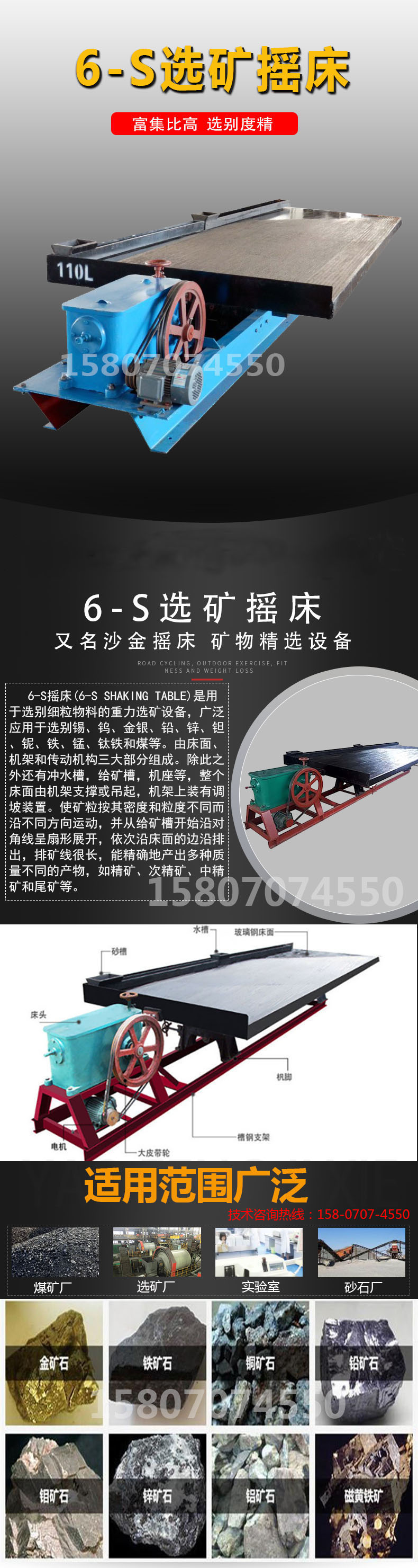 6S重力选矿摇床沙金铜米钨锡电子垃圾分选大小槽钢实验室矿山设备