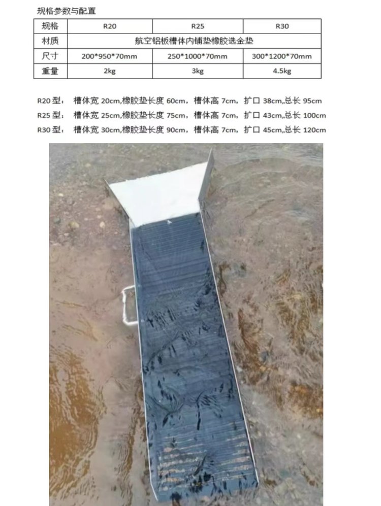 小型手提淘金溜槽 筛金无动力选金溜金槽橡胶垫块手工沙金工具