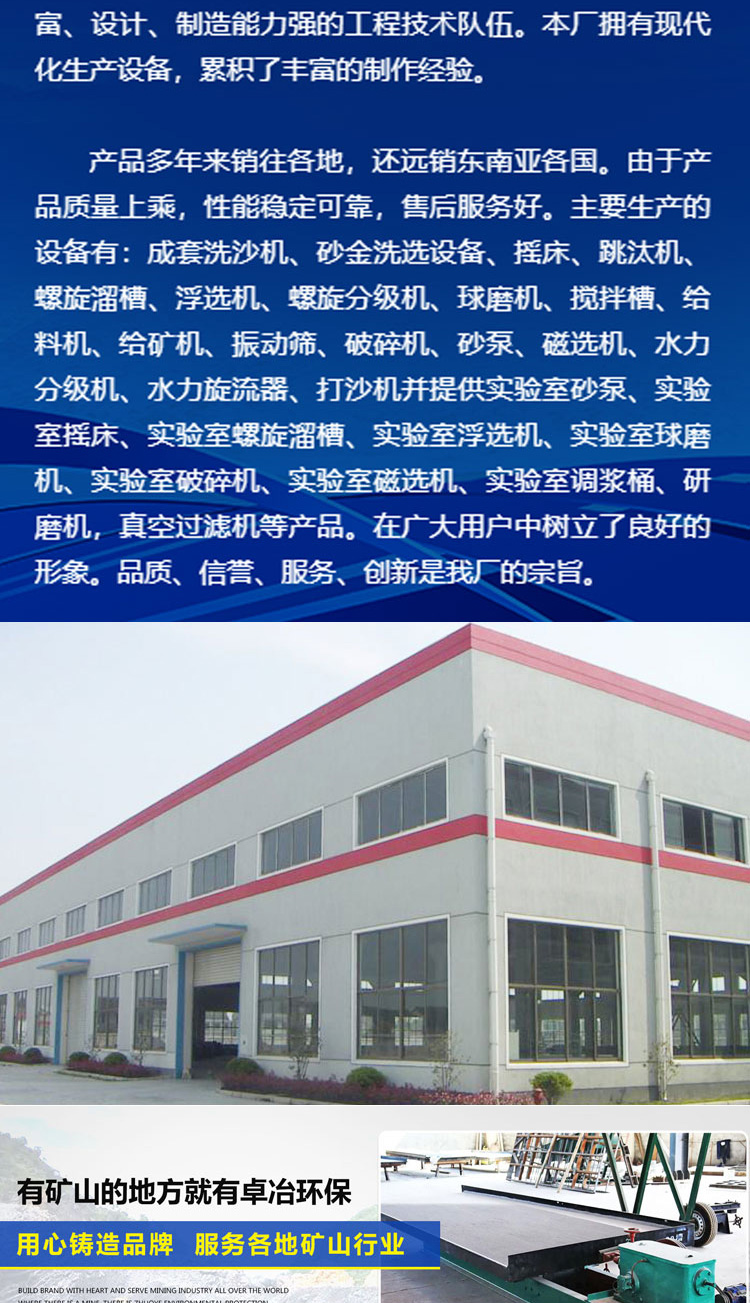 打砂机、淘金草、振动筛、洗沙机、跳汰机、浮选机、离心机、浮选设备、磁选设备、重选设备、选矿设备、矿用球磨机、分泥脱泥斗、螺旋分级机、螺旋输送机、摆式给矿机、水力旋流器、皮带输送机、gz振动给料机、双螺旋洗矿机、矿用筛分设备、zgs双层震动筛