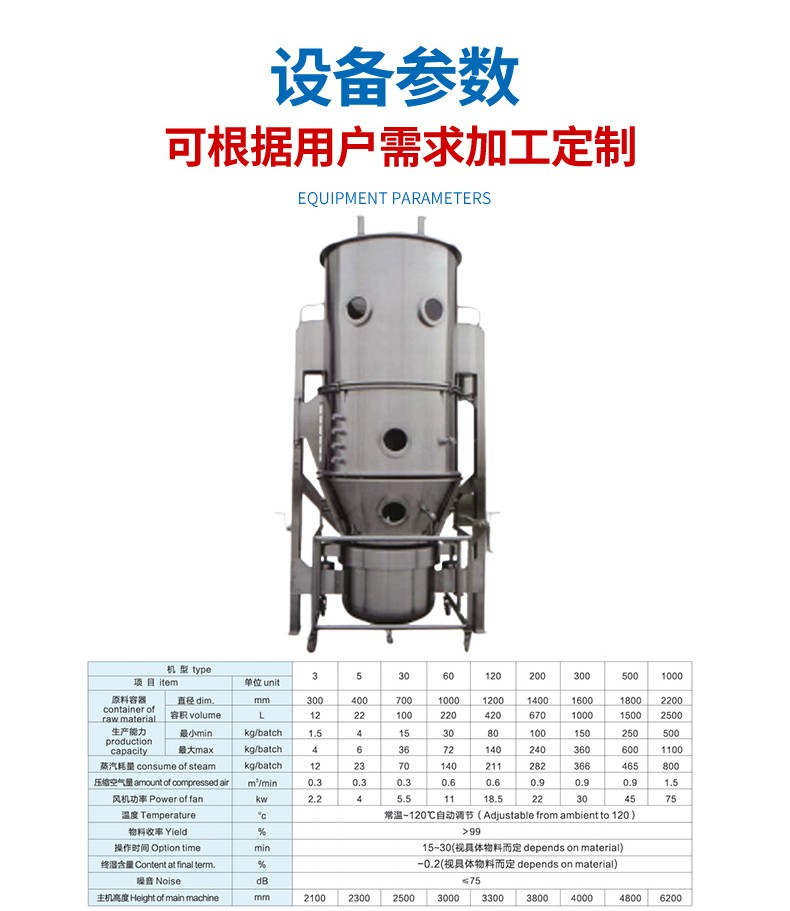 沸腾(一步)制粒干燥机 食品饲料一步造粒 流态化干燥 受热均匀