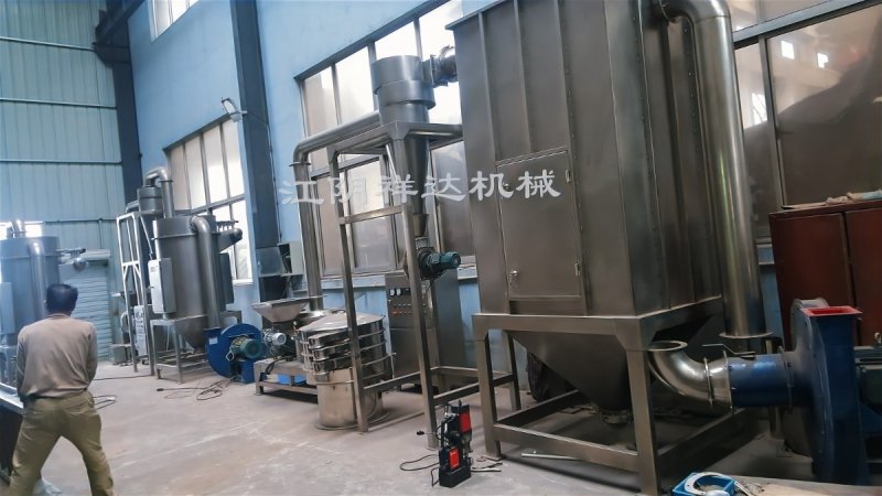 生姜超微粉碎机原理:超微粉碎机是一种立轴反射型微粉碎机,能同时完成微粉碎和微粉分选的两道加工工序。它由机体、机架、喂料装置、粉碎装置、出料管、传动装置和电机等组成,配套由主机、除尘器、高压离心风机、关风器、旋风集料器和电控柜等组成整套气流涡轮微粉机组。在不停机的情况下,可任意调节粒度。产品粒度均匀,细度可达10-5um,该机具有自冷却功能。
