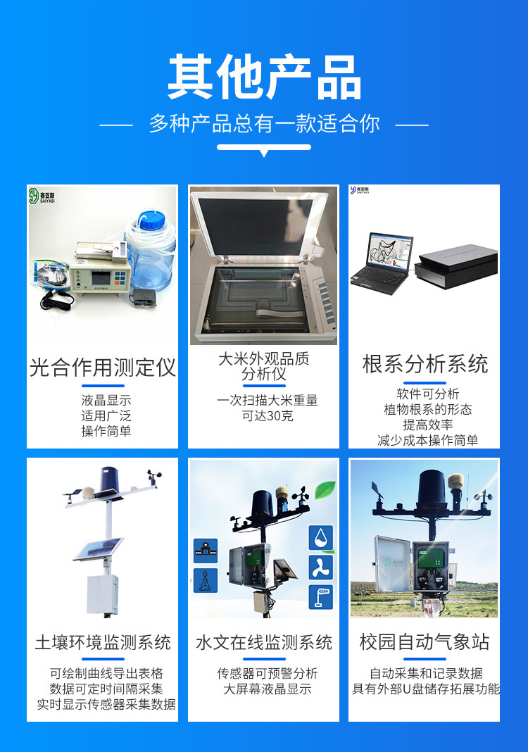 气象站、测定仪、结构仪、积光仪、土壤墒情、农业气象、水文在线监测、植物根系分析、大米外观分析