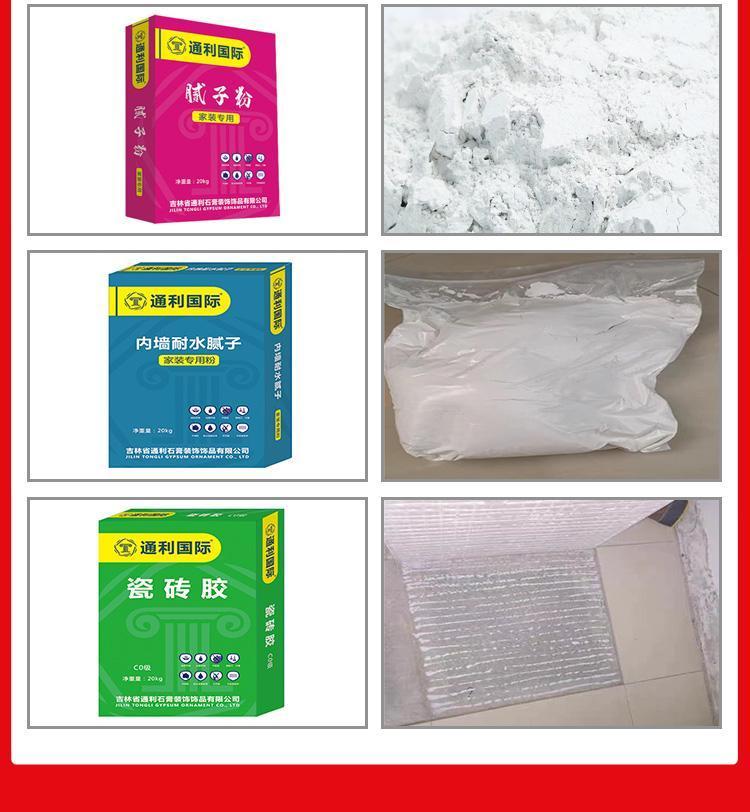 瓷砖胶、腻子粉、石膏粉、嵌缝石膏、墙面界面剂、轻质抹灰石膏、轻质石膏隔墙板、石膏板