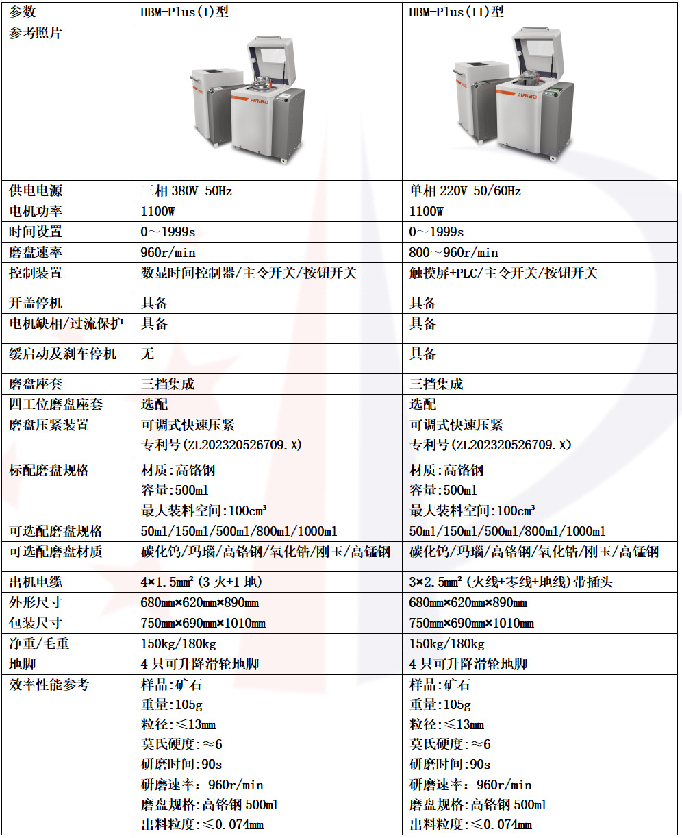 HBM-Plus系列盘式研磨机一般在60-180秒即可完成样品研磨,具磨样速度快、操作便捷,粉尘无泄漏等优点,研磨系统采用本公司专利(ZL202320601086.8)并进一步优化,实现磨盘的磨环、磨块,处于高效的圆周平面摩擦运动轨迹,反复测试证实,HBM-PLUS系列盘式研磨机即使设置在低速率下就具有优秀的研磨能力,这将有利于样品的污染控制和磨盘的使用寿命。操作的便捷性也是设计HBM-PLUS系列盘式研磨机时一个重要选项,一键启动、开盖自停、主令开关机,研磨操控十分简单,磨盘压紧装置采用本公司专利(ZL202320526709.X)实现快速一按压紧,当需使用不同高度磨盘时可随时快速调节高度,且调节后无需有后续动作,十分方便,关键部件采用高强度材料及调质淬火工艺,坚固耐用。外形设计人机友好,高度适宜,主箱体四角呈圆弧,机盖设有透明观察窗,开启后工作台三面通畅,取装磨盘舒适。得益于优化后专利的研磨系统,HBM-PLUS系列盘式研磨机工作时机箱的共振、噪音也控制的尤为出色,姿态优雅、沉稳。电气精选ABB,大和、欧姆龙等知名品牌,确保可靠耐用,机盖内衬物理强度高的聚酯纤维隔音板,磕碰不破损,机器底脚带有升降滑轮,便于移动。