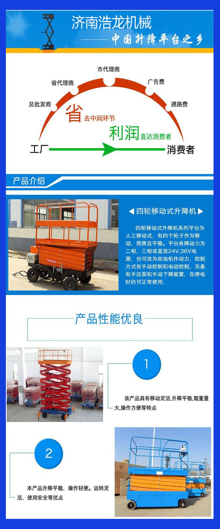 浩龙 高空作业车 升高8到12米小型升降平台 液压升降机