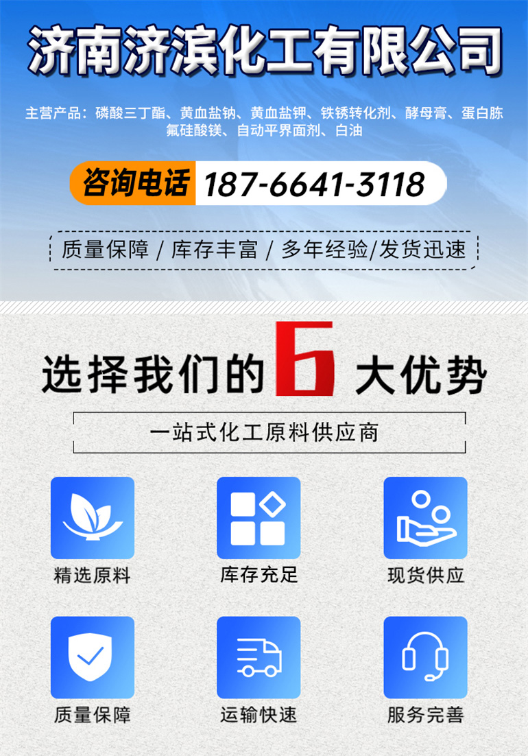 红丹粉、无味煤油、酸酯乳液、对苯二酚、环氧树脂、生物发酵、钢铁抑雾、防水乳液、二异丁腈、沥青乳液、烷基硫酸钠、生物培养基、地坪固化剂、愈创木酚钠、生长调节剂、铁锈转化剂、建筑胶粘剂、亚铁氰化钠、磷酸三丁酯、树脂稀释剂、酵母提取物、苄氨基嘌呤、枯草芽孢杆菌、防水涂料乳液、乙烯基酯树脂