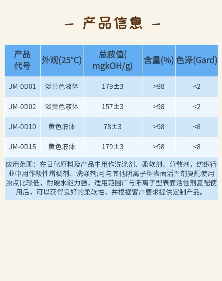 油胺聚氧乙烯醚 用作洗涤剂 柔软剂 分散剂 酸性增稠剂