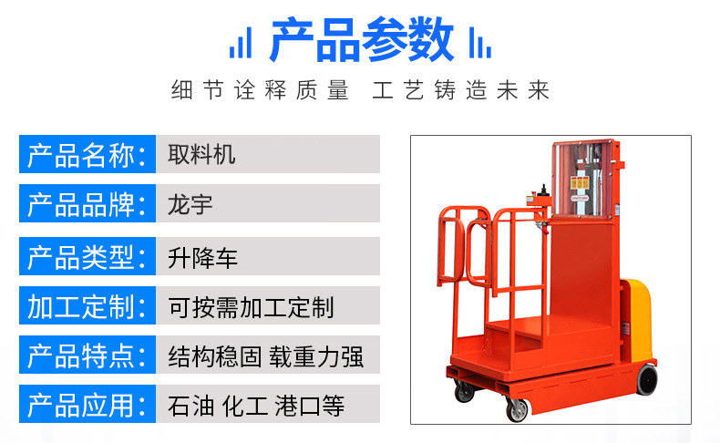 龙宇高空电动取料机 仓库堆料机 载人高空作业车