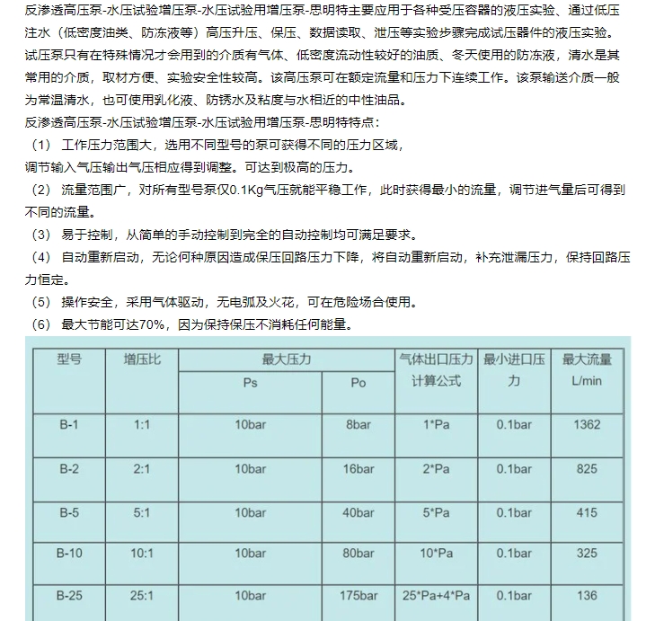反渗透高压-水压试验增压器用增压泵 清水泵 气动控制