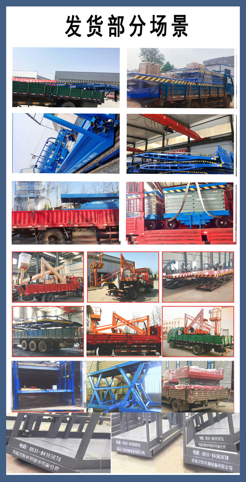 液压升降舞台、高空作业平台、移动式装车平台、移动式升降机、固定式升降机、厂房升降货梯、路障机、升降限高架、导轨式升降机、固定式登车桥、移动式登车桥、自行走升降平台、曲臂式升降机、无障碍升降机、家用电梯、全自行升降平台、固定剪叉式升降平台、套缸式升降机、自行曲臂式升降机、固定式液压升降货梯、移动式升降车、导轨式升降货梯、固定式装卸平台