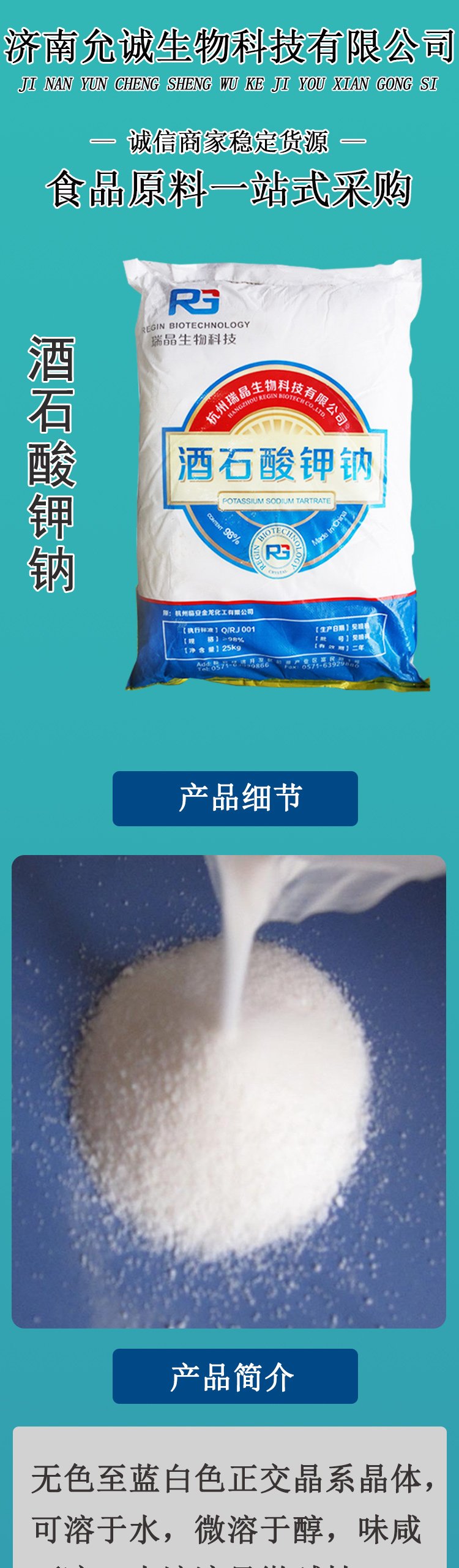 酒石酸钾钠食品级酸味调节剂烘焙原料食品添加剂 瑞晶