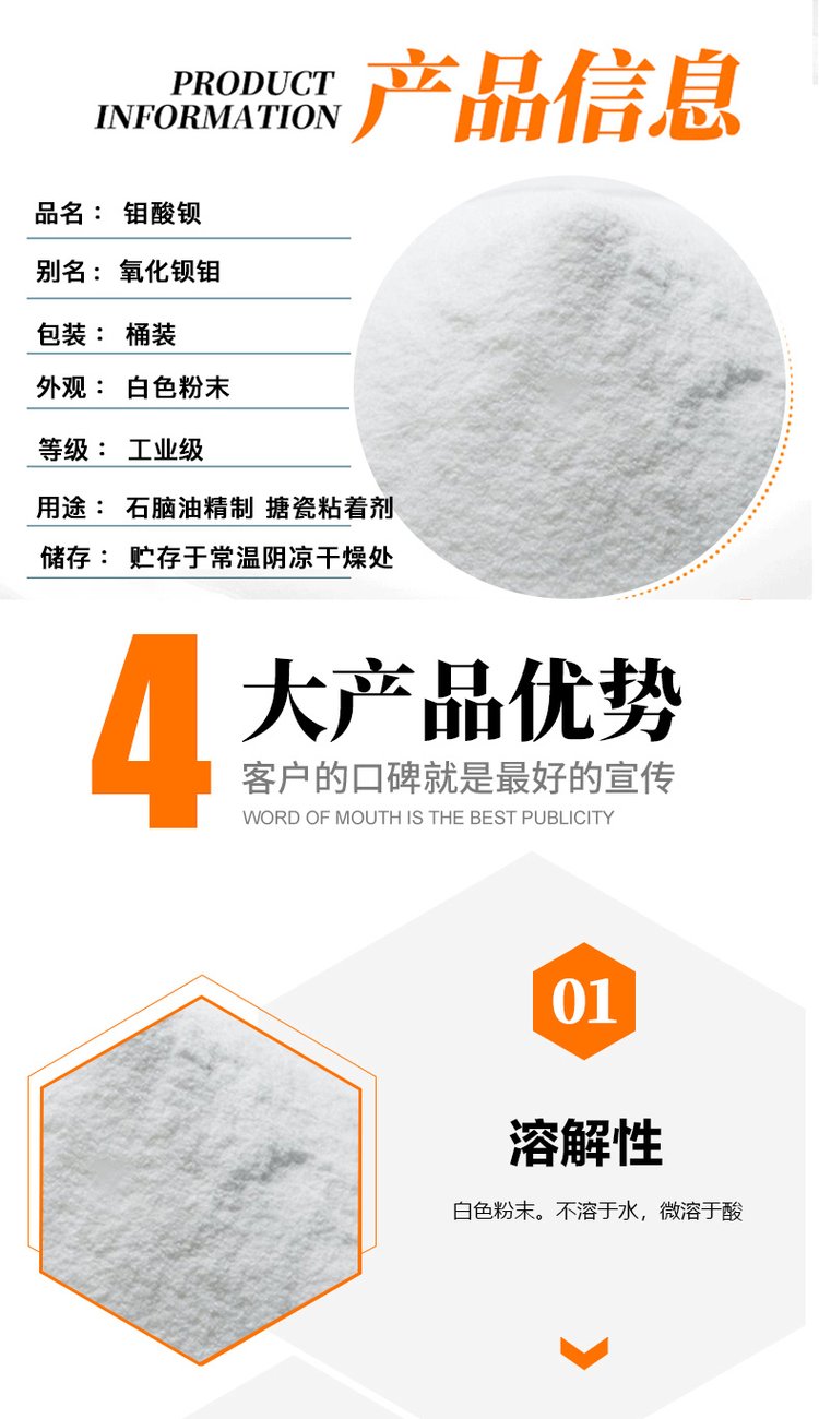 钼酸钡 氧化钡钼 石脑油精制搪瓷产品粘着剂除硫剂工业级含量99