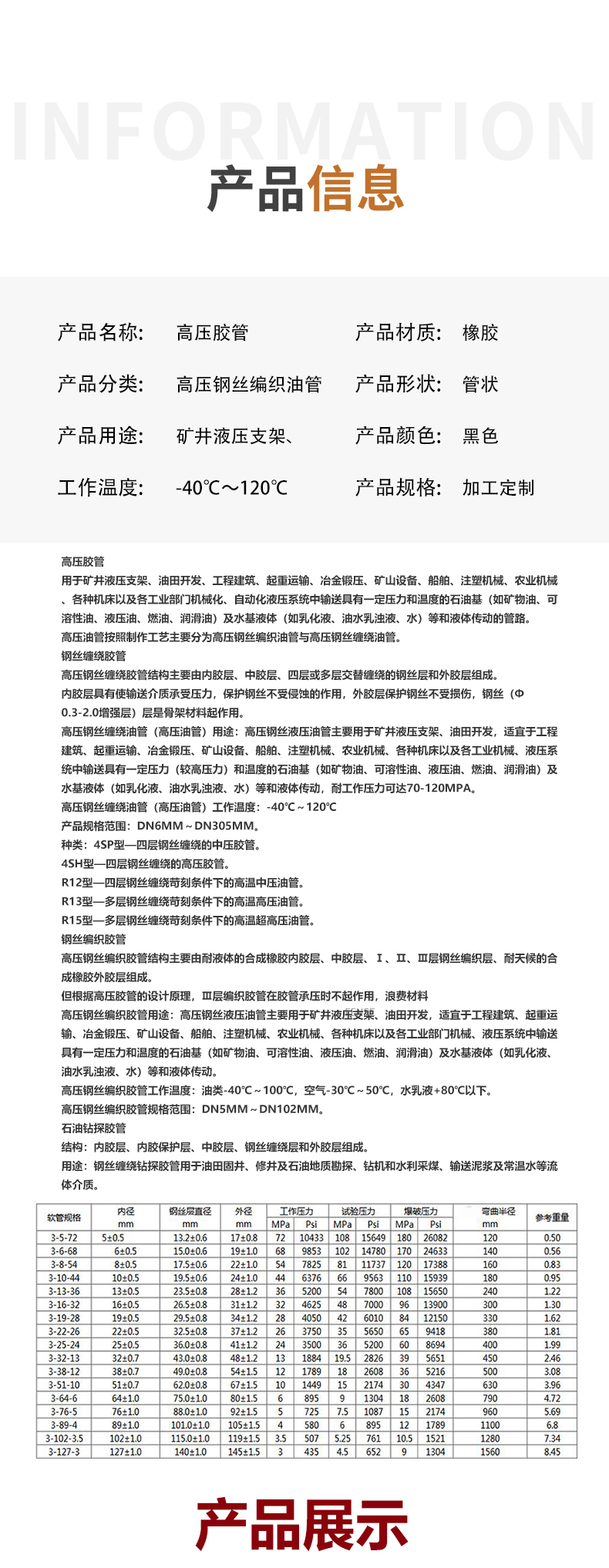 高压胶管、大口径胶管、钢丝骨架胶管、大口径法兰胶管