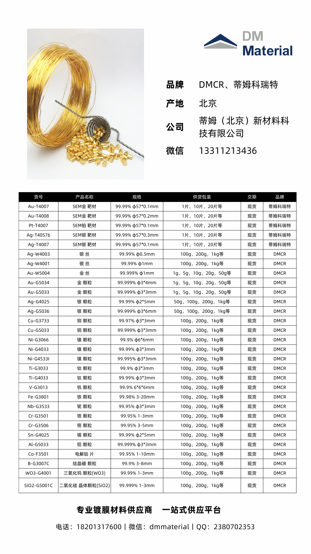 蒸发镀膜材料;光学镀膜材料;氧化硅颗粒;陶瓷化合物;金属单质块材;蒸镀颗粒;钨舟钼舟钨丝篮;贵金属蒸发料;金颗粒铂颗粒钯颗粒银颗粒;硫化锌颗粒硒化锌颗粒锗颗粒氧化铪颗粒;氧化钛颗粒氧化铝颗粒氧化锌颗粒