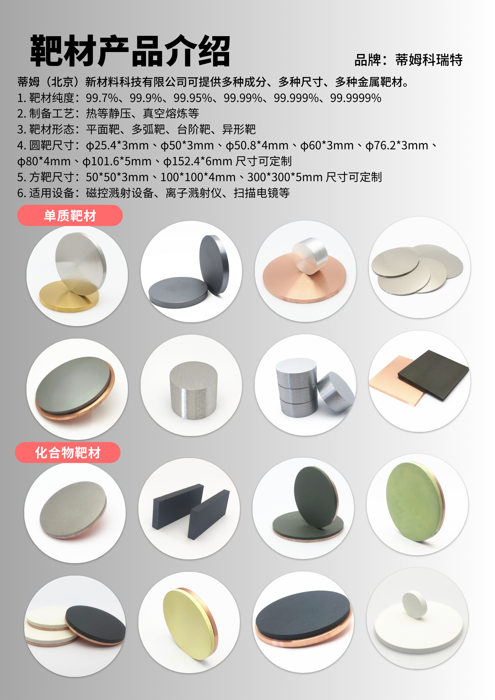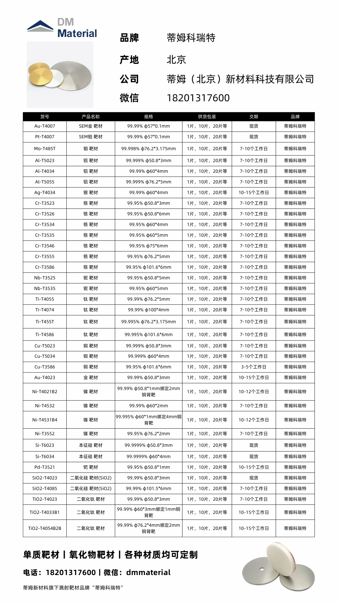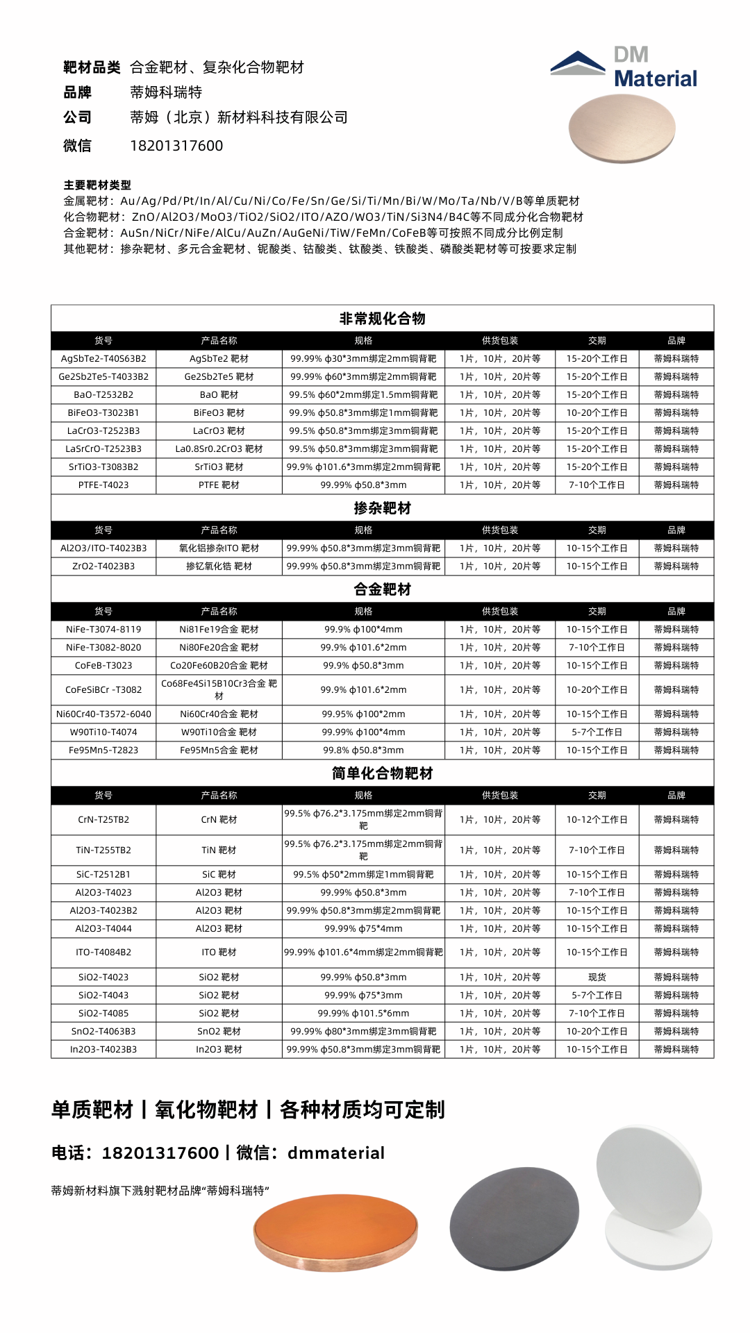 三氧化钼 靶材(MoO3)99.9% φ25.4*6mmMoO3-T30A6 蒂姆新材料 DMCR