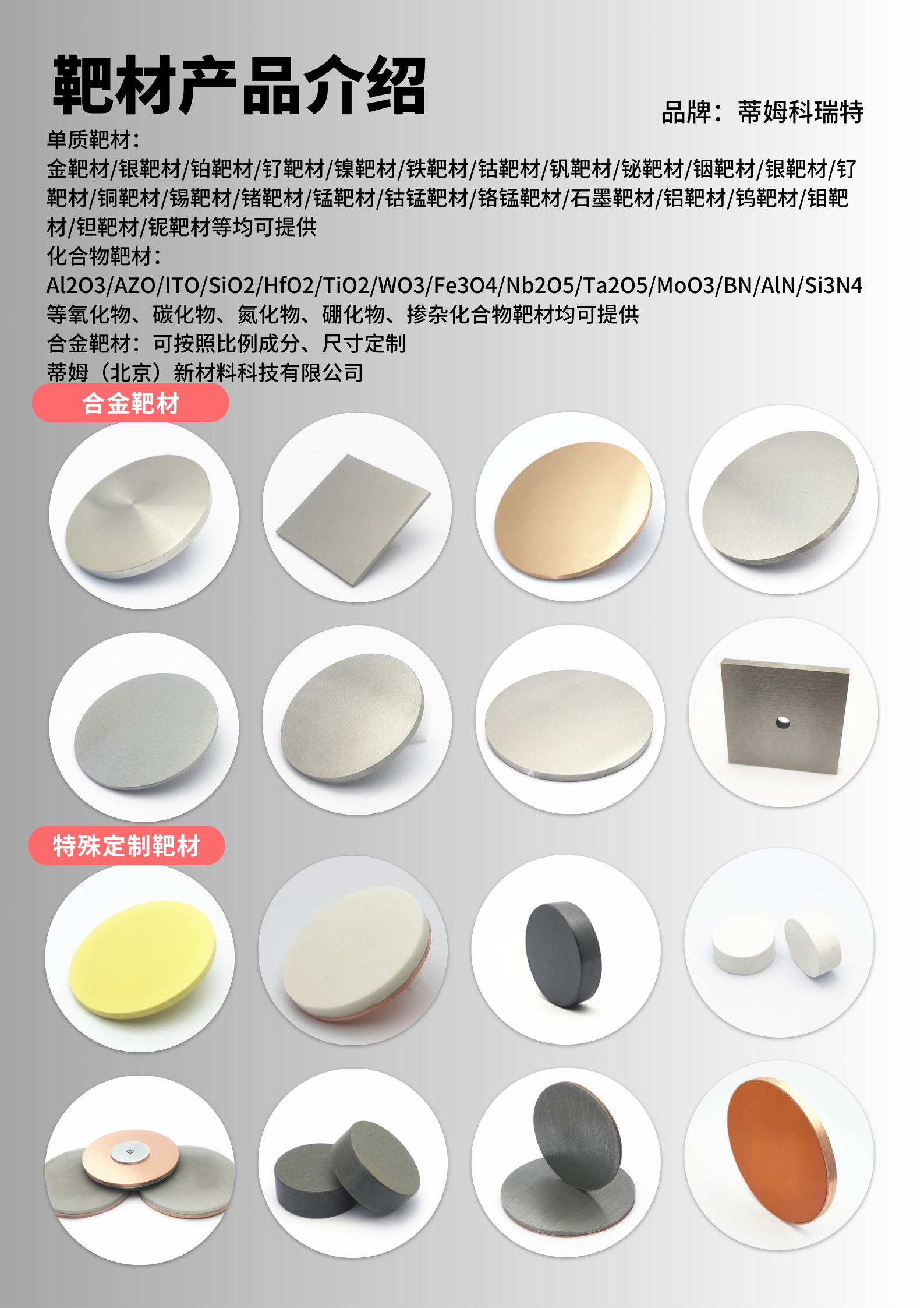 蒸发镀膜材料;光学镀膜材料;氧化硅颗粒;陶瓷化合物;金属单质块材;蒸镀颗粒;钨舟钼舟钨丝篮;贵金属蒸发料;金颗粒铂颗粒钯颗粒银颗粒;硫化锌颗粒硒化锌颗粒锗颗粒氧化铪颗粒;氧化钛颗粒氧化铝颗粒氧化锌颗粒