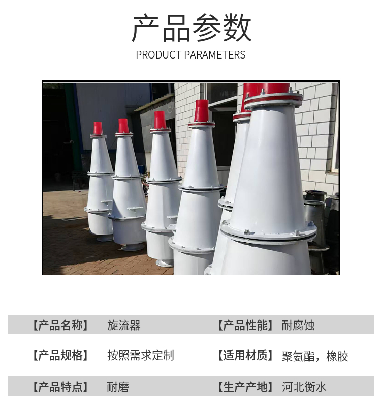 旋流器组、叶轮盖板、沉沙除污器、脱硫旋流器、泥沙分离器、聚氨酯筛板、水利旋流器、搅拌机叶轮、泥水分离器、泥浆分流器、聚氨酯旋流器、砂石料分流器、耐磨振动筛网、矿用牛筋筛板、选矿分离旋流器、聚氨酯包边筛板、泥沙细沙分离器