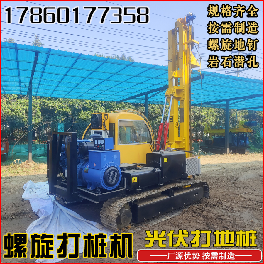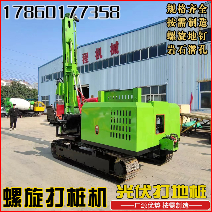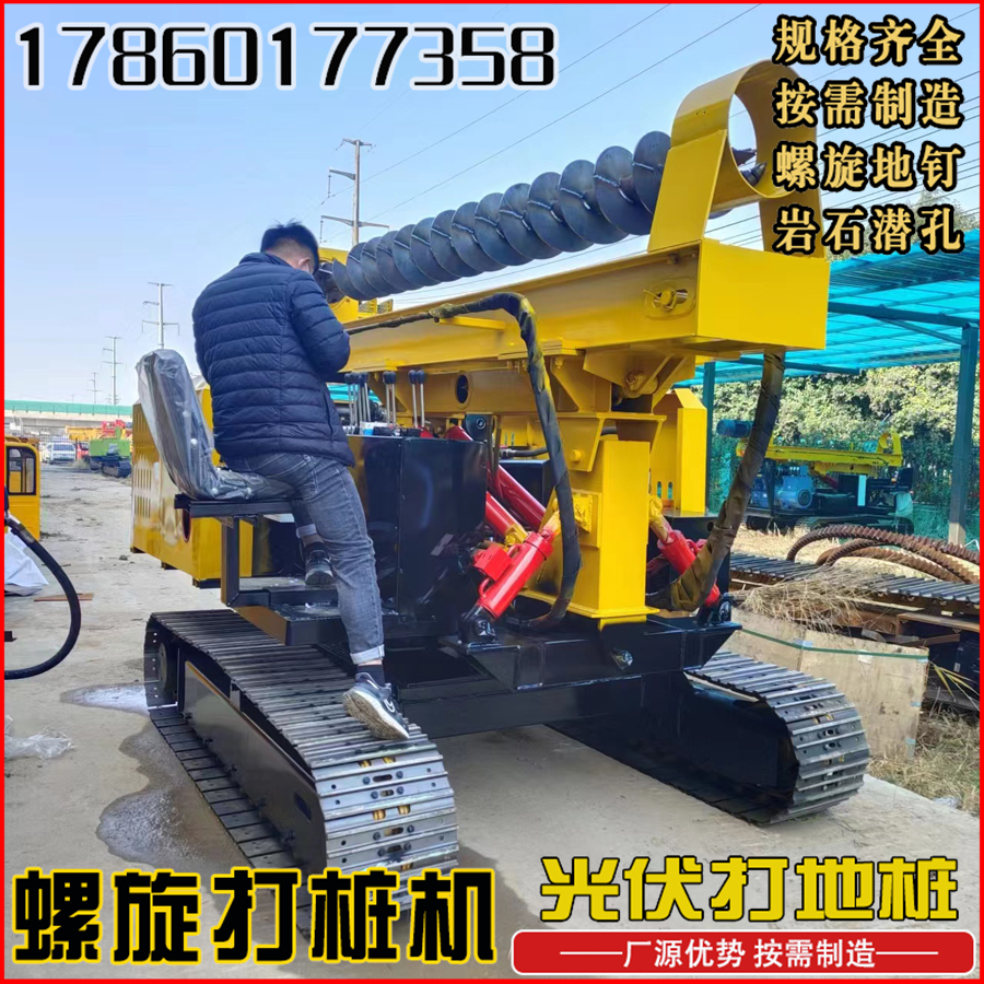 山地岩石光伏打桩机360度旋转高原陡坡履带压桩机全液压锤钻孔机