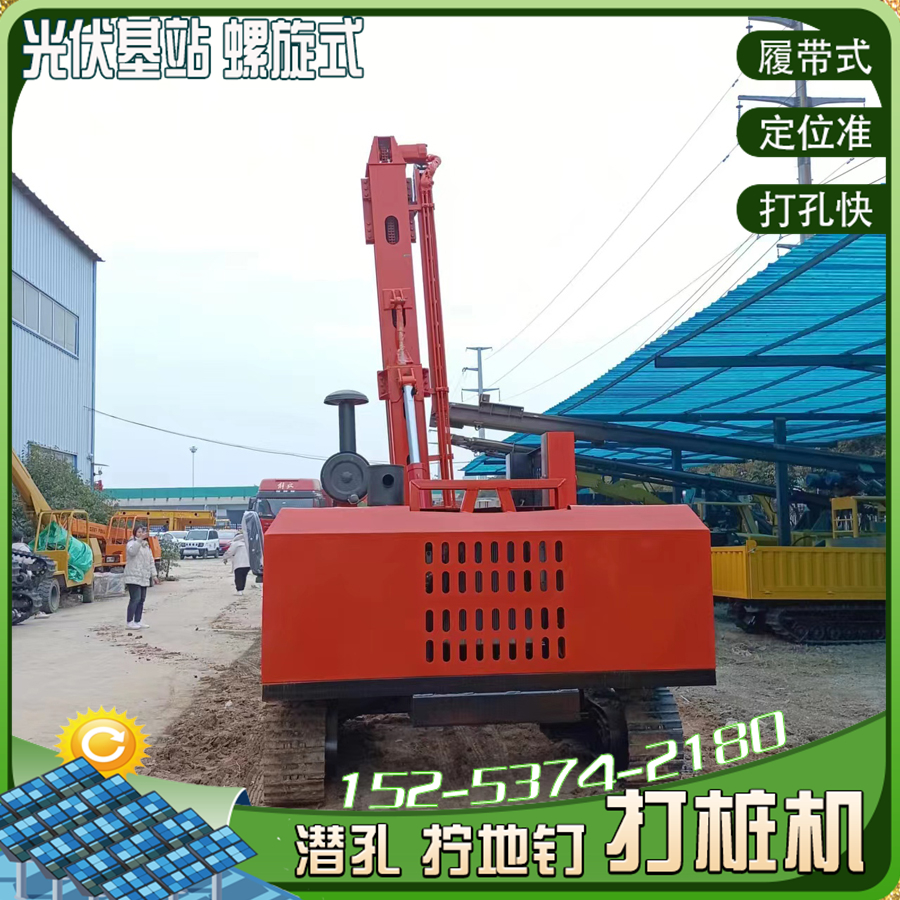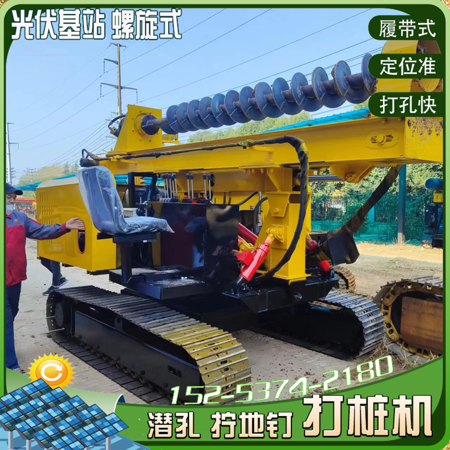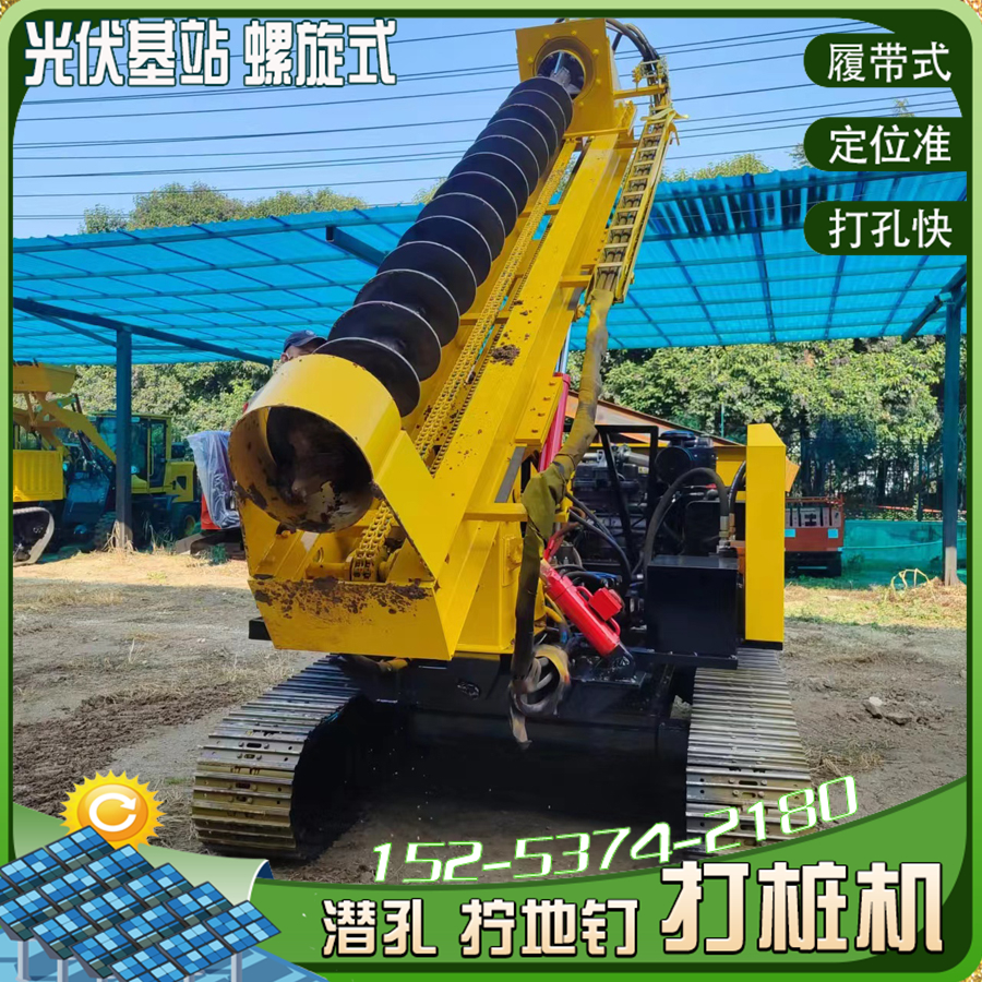戈壁滩太阳能光伏钻机螺旋拧地钉打桩机 全液压履带式钻孔机