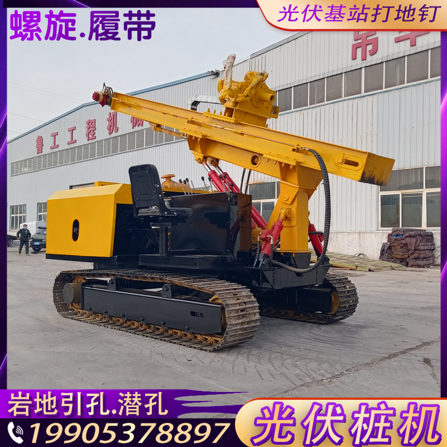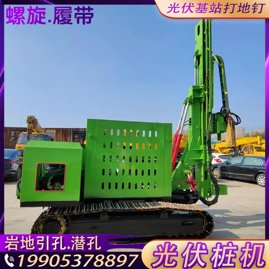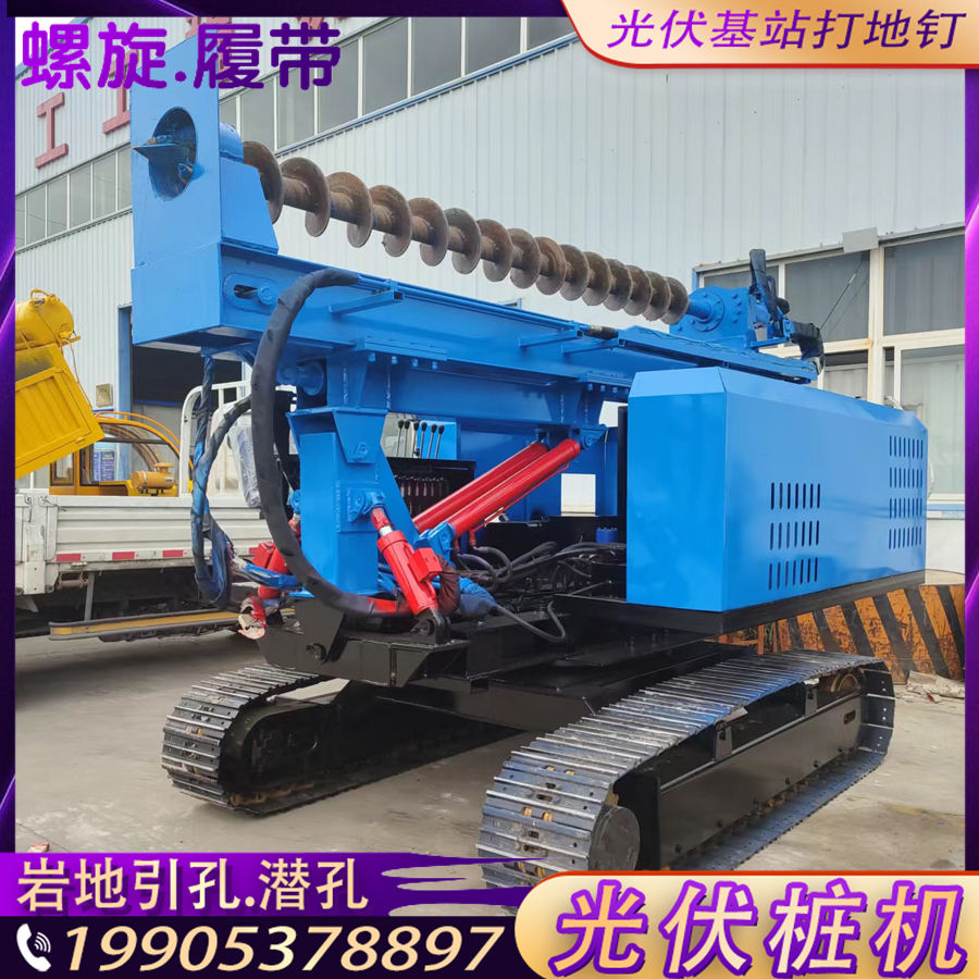 戈壁滩埋桩打坑潜孔钻机履带液压螺旋钻孔工程设备高原光伏打桩机