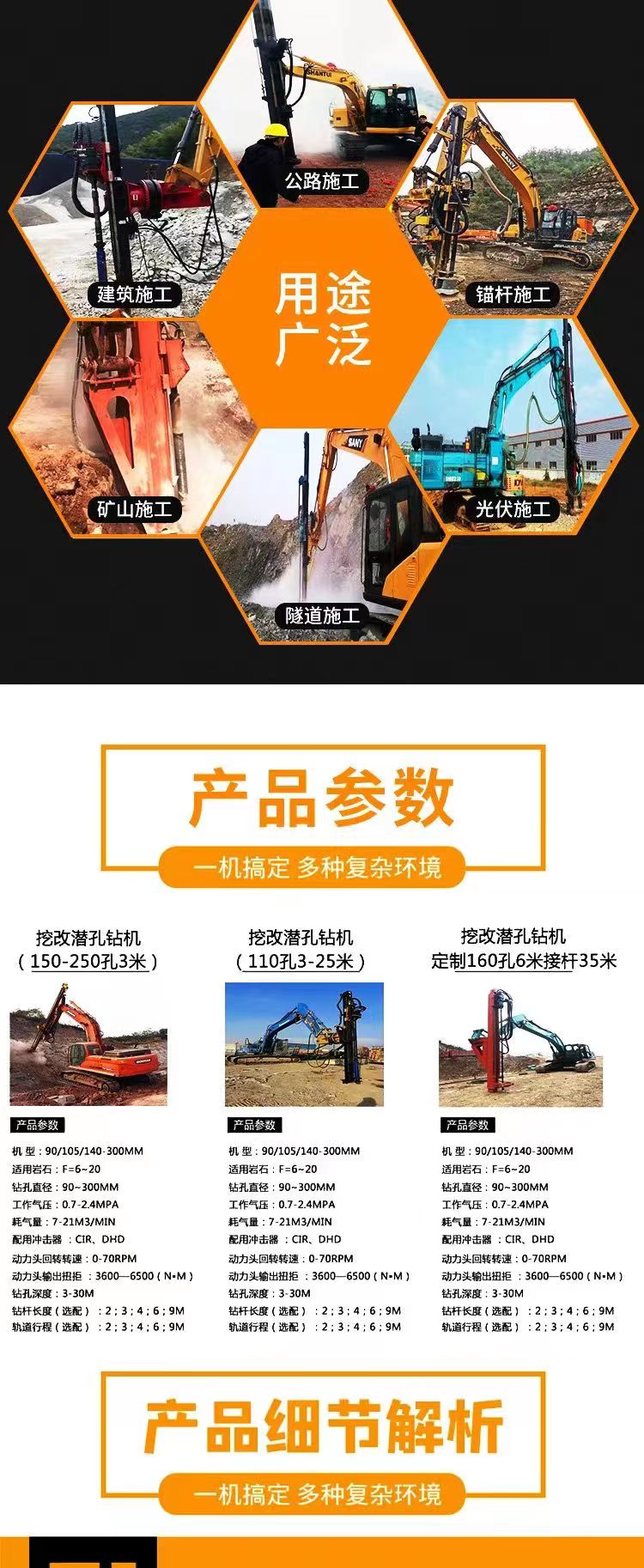 3-6米挖改钻机 挖机改光伏钻孔机 挖掘机改装隧道护坡凿岩钻机