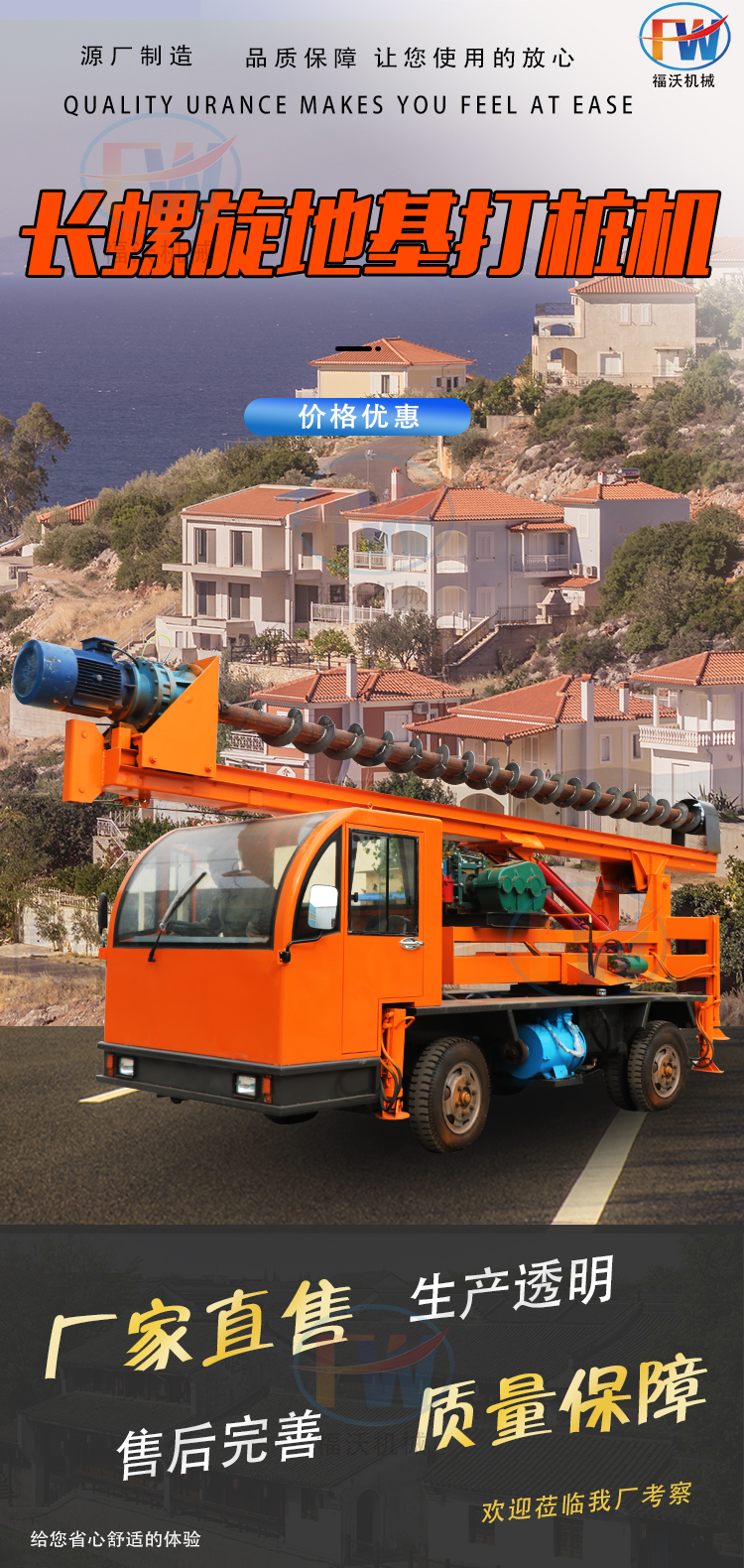 民房地基加固螺旋钻孔机 四驱轮式引孔机械 360旋转长螺旋打桩机