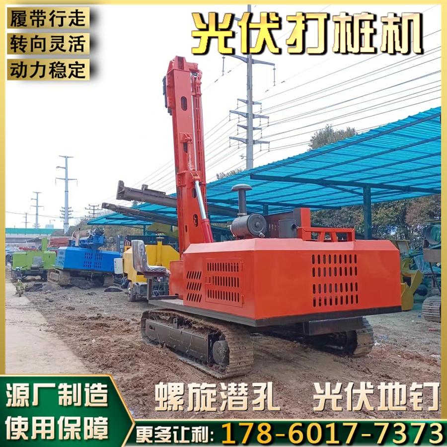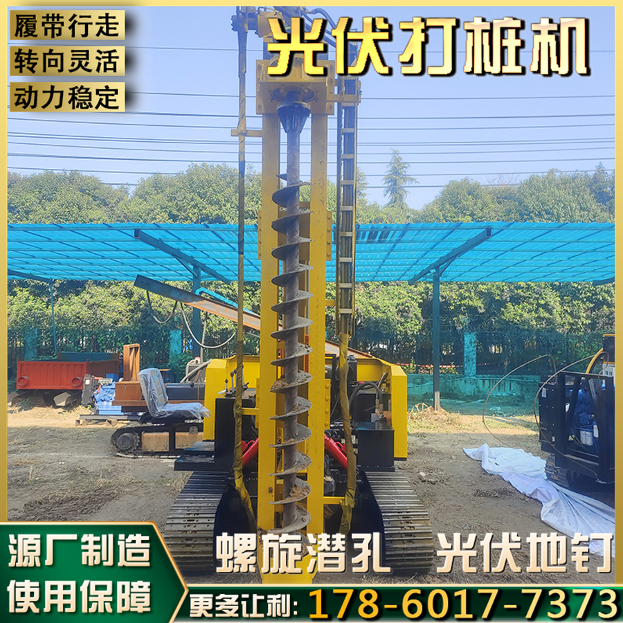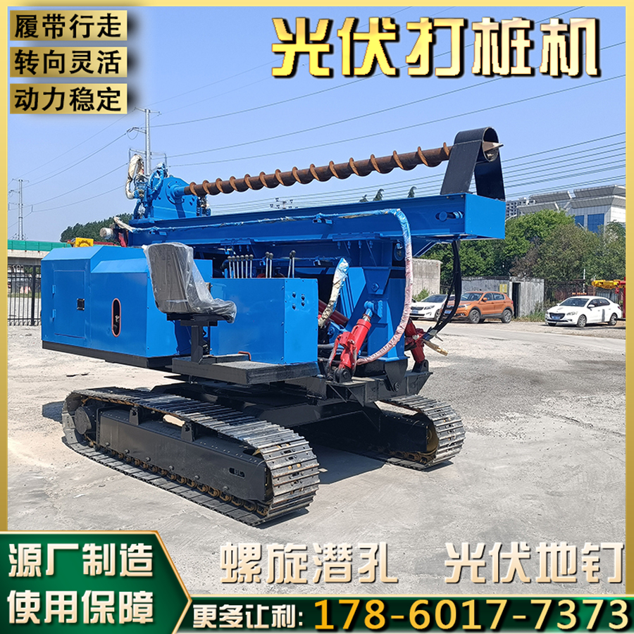 光伏打桩机 360度旋转潜孔钻机 光伏工程发电机组基坑螺旋钻孔机