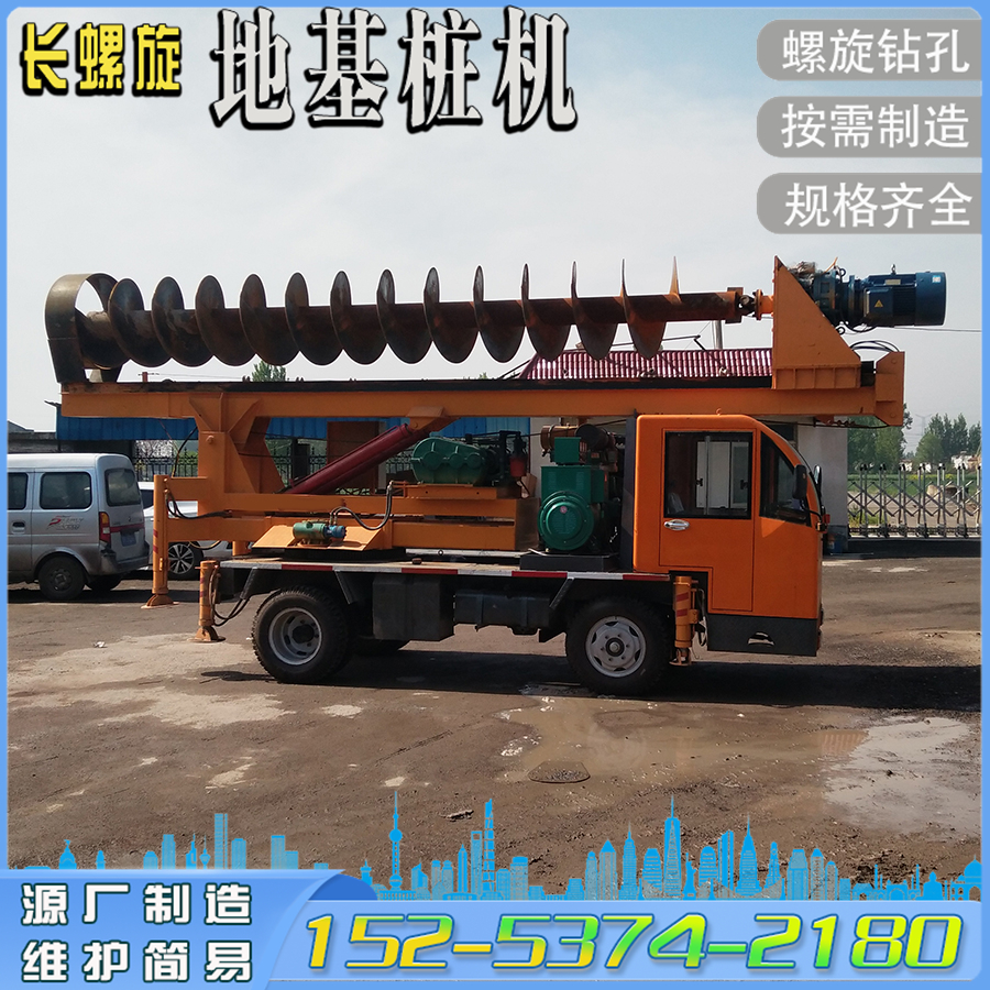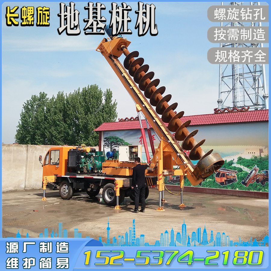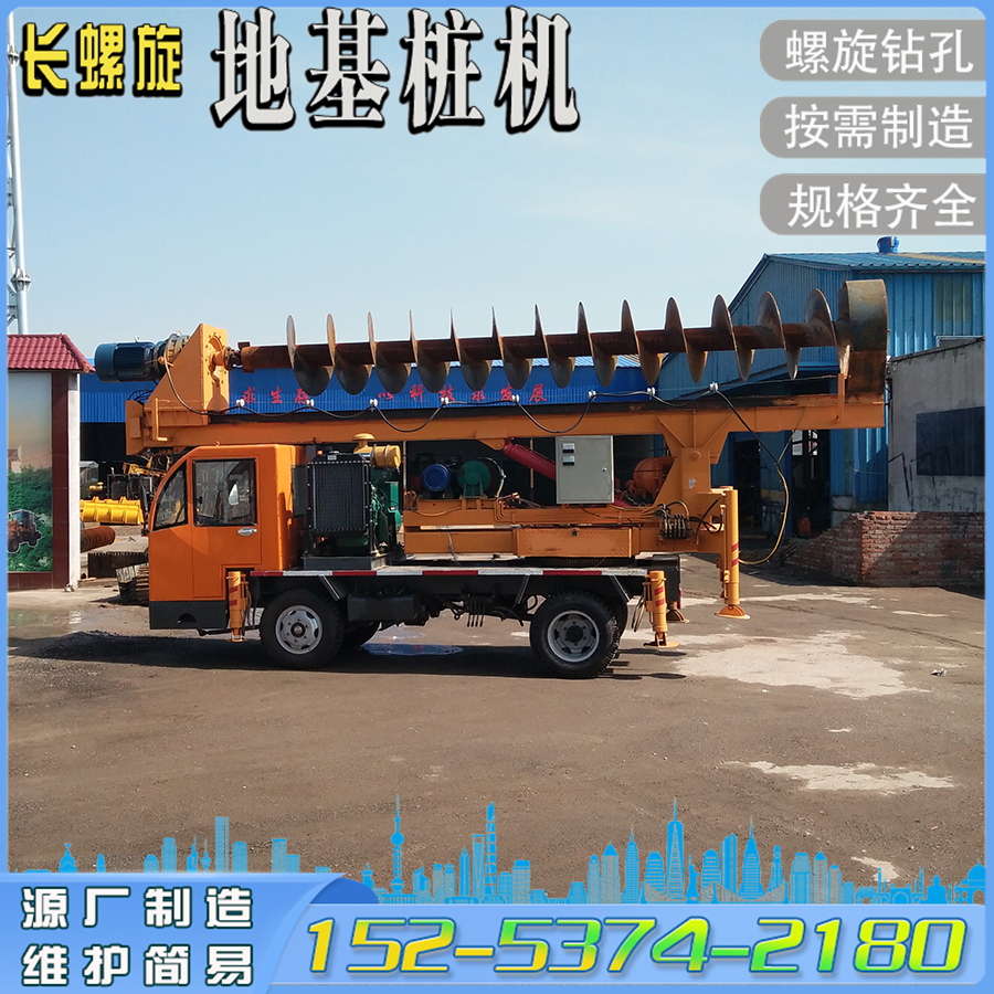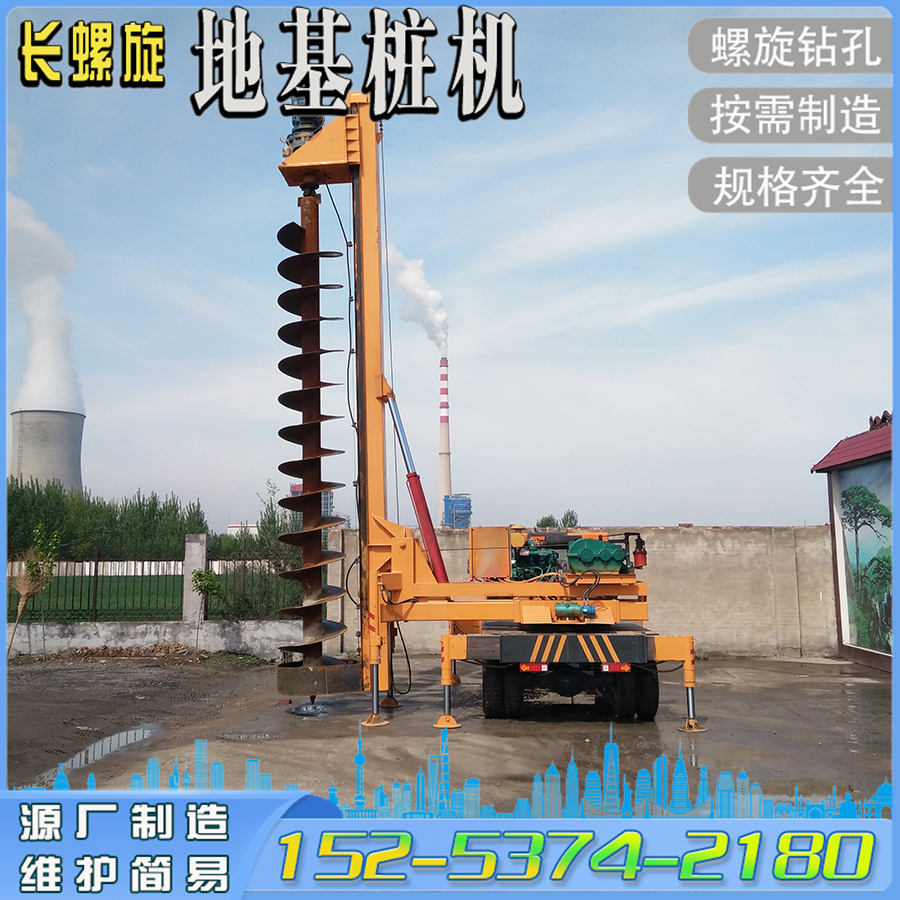 地基打桩机 360°旋转桩架轮式栽电线杆钻孔机 夯实一体长螺旋钻机