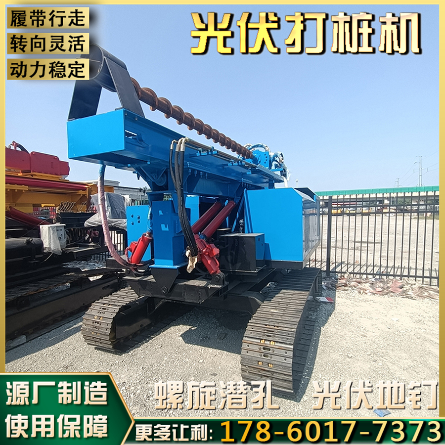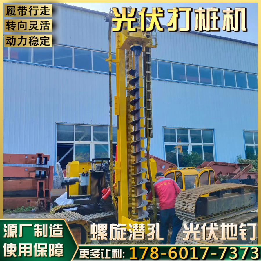 360度旋转光伏打桩机 多功能太阳能电站打桩 履带自行走螺旋钻孔机