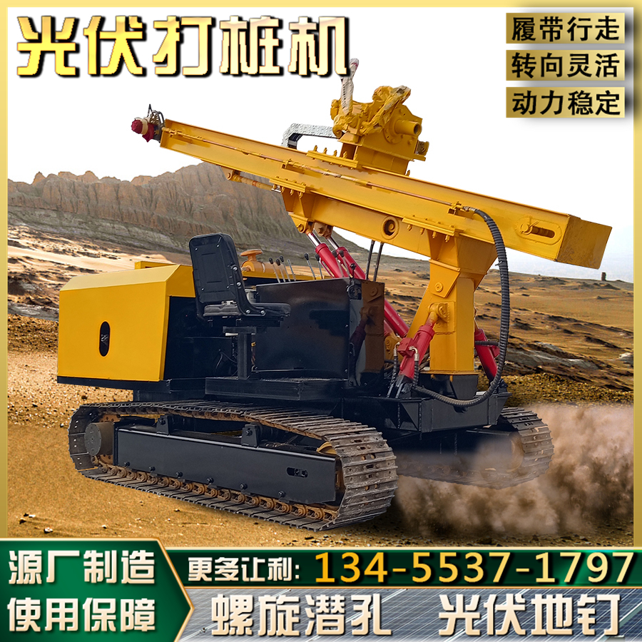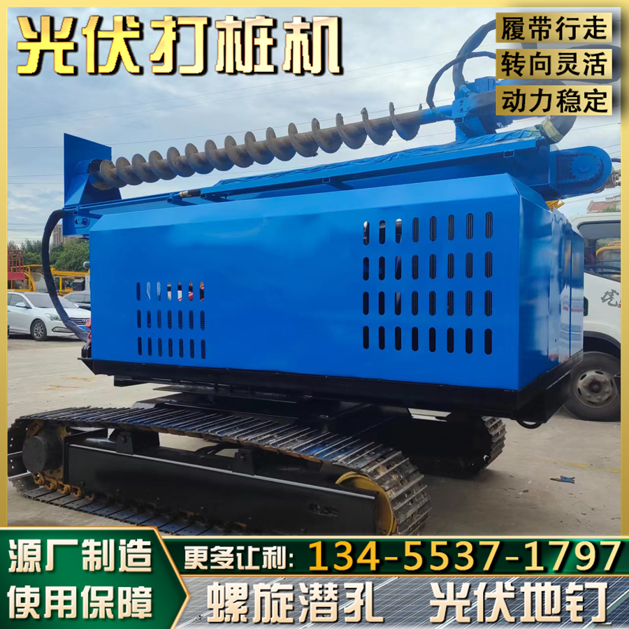 履带式液压螺旋钻孔机360度旋转太阳能光伏打桩机岩石潜孔设备
