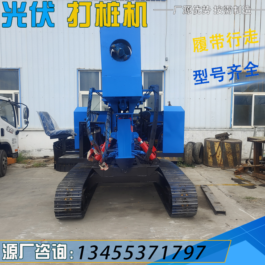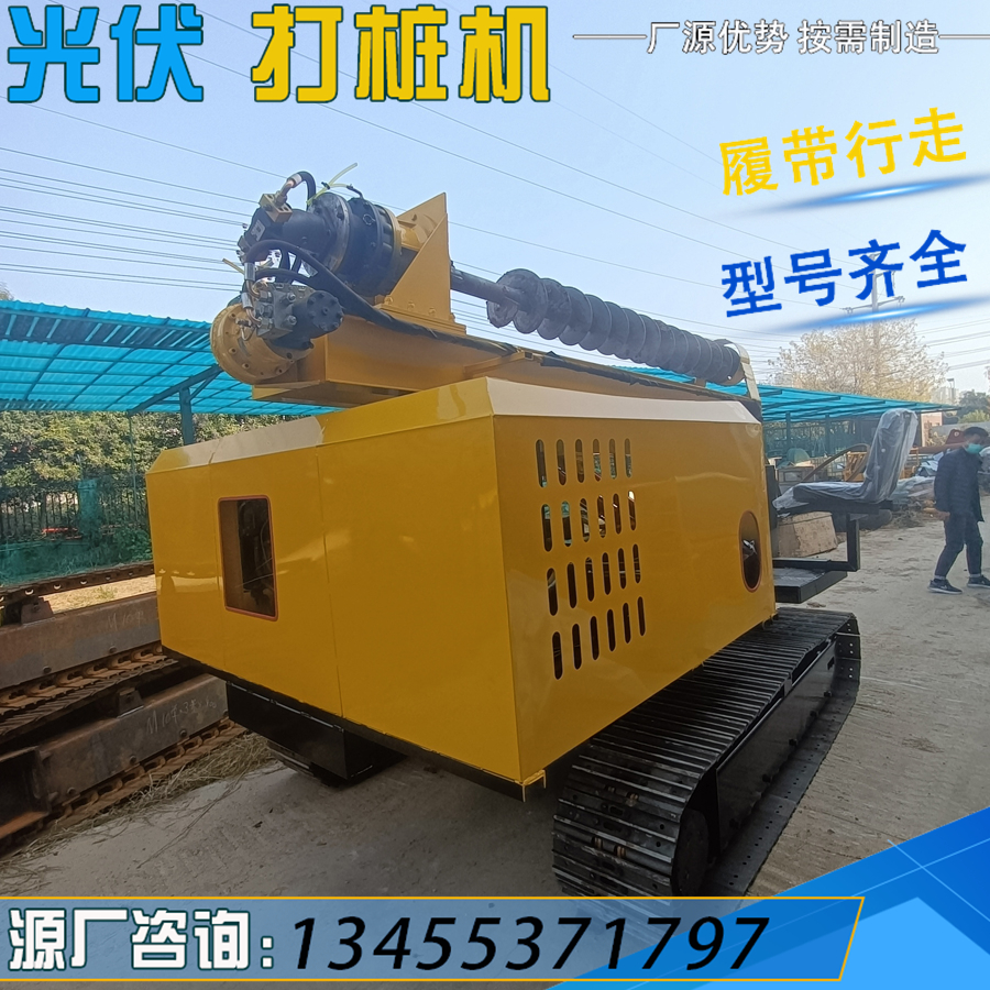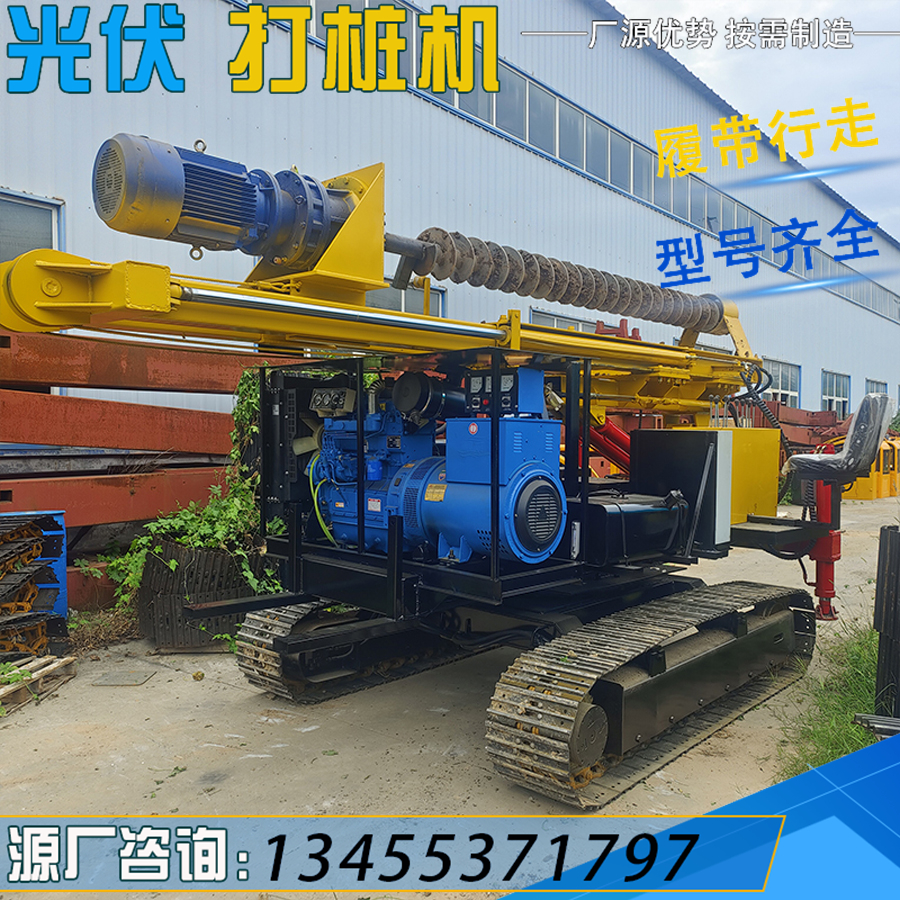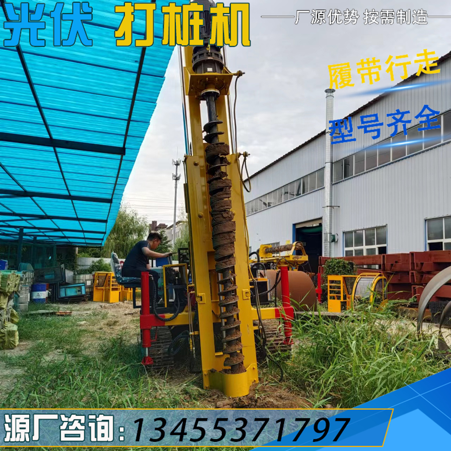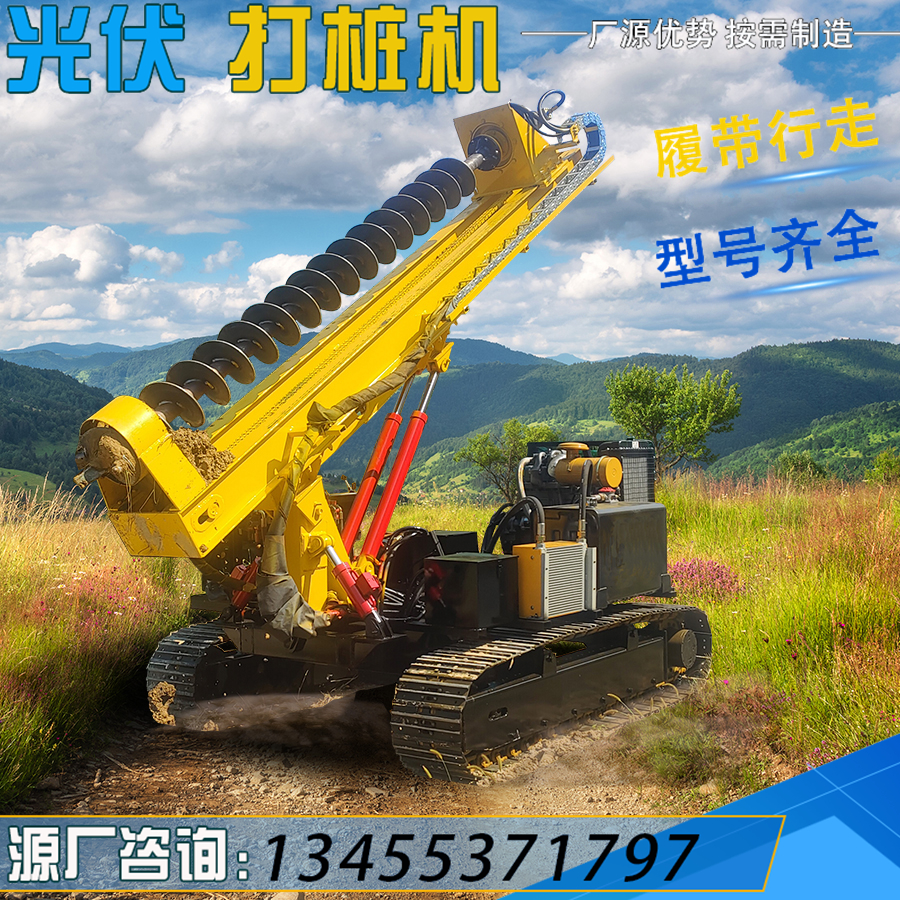 履带式光伏螺旋打桩机 液压山地岩石钻孔机 360°旋转太阳能打孔机