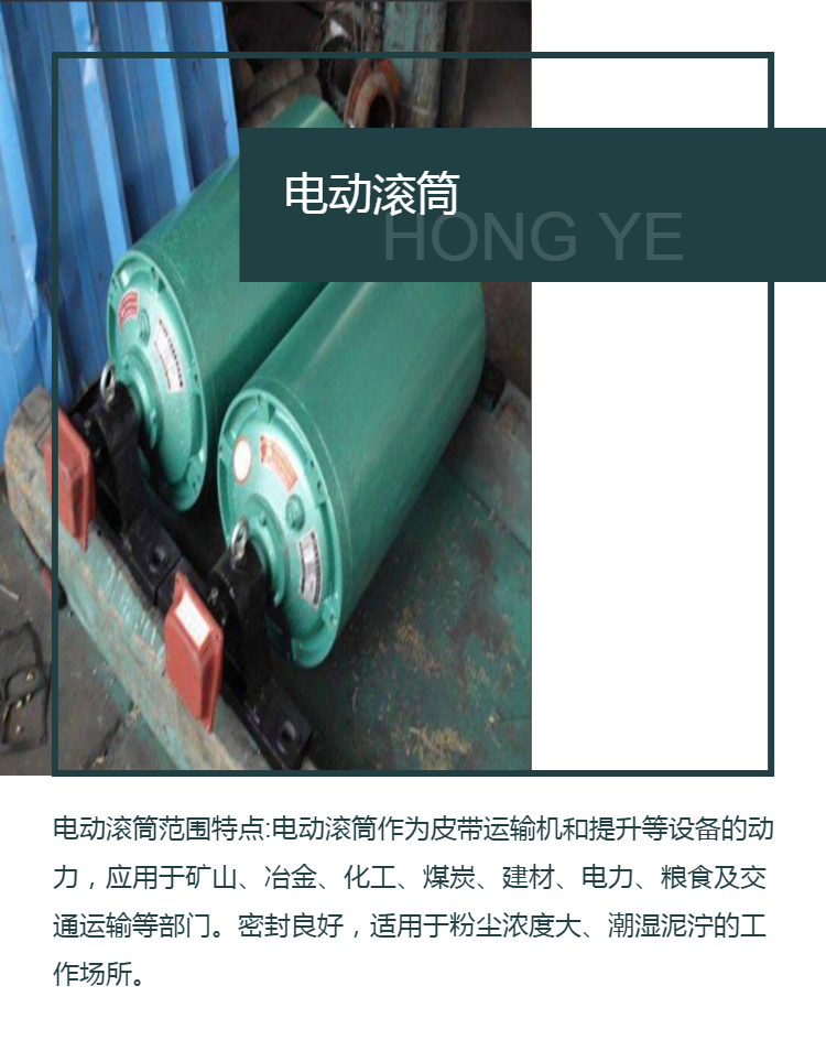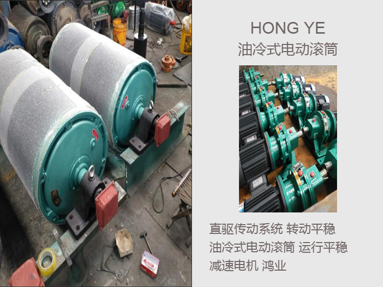 直驱传动系统 转动平稳 油冷式电动滚筒 运行平稳 减速电机 鸿业