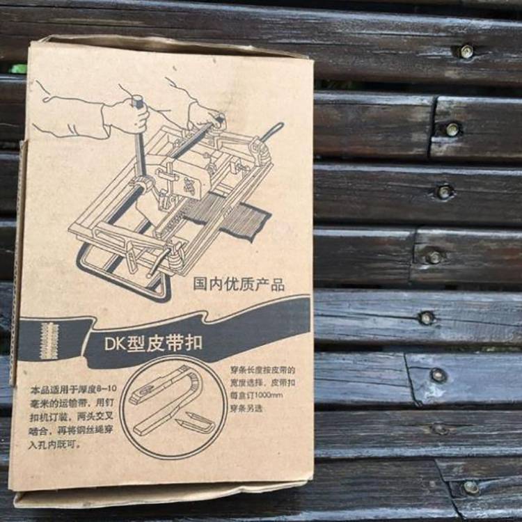 适用带厚:一种扣子可装订带厚范围大,由于扣钉固定带扣后其钉脚能钩回输送带。可以一种厚度规格的带扣能满足6-12mm厚度的输送带装订联结,而方便客户的管理。