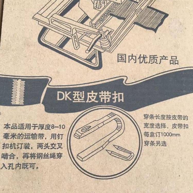 连体式带扣:连体式结构,装订齐整,接头受力均匀,寿命长。输送带沿带宽度方向可用一条带扣装订;仓储和运输过程中不会造成散落而损耗。