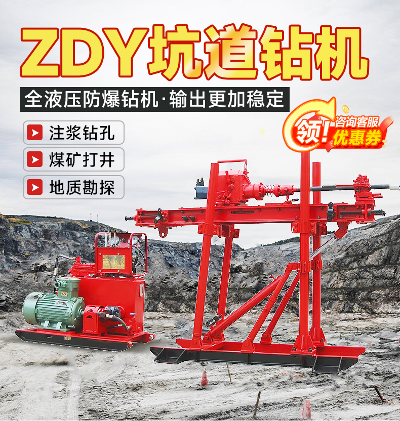 煤矿坑道钻机 打孔探矿注浆地质勘探探矿取芯 履带式矿用