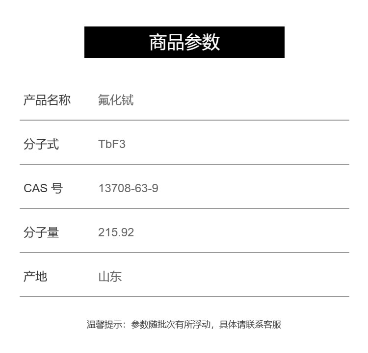 氟化铽 巨基化工 制取金属铽, 工业级 99% 13708-63-9 磁致伸缩材料