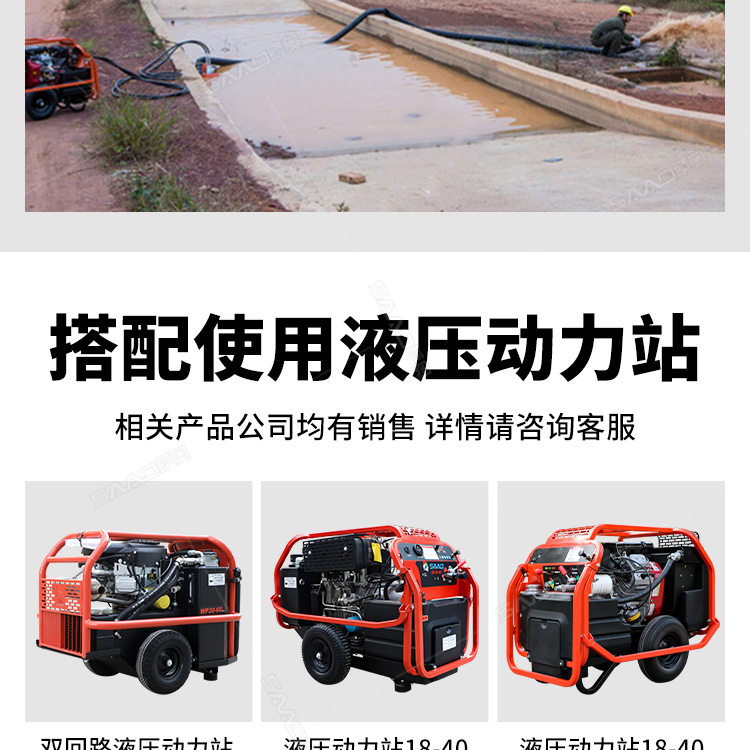液压动力站、渣浆泵、防汛泵、移动照明车、压路机、防汛打桩机、小型挖掘机、灌缝机、混凝土破拆工具组、机动泵、高扬程水泵、应急救援设备、开槽机、马路吹风机、除线机、灌缝胶、路面养护设备、滑移装载机
