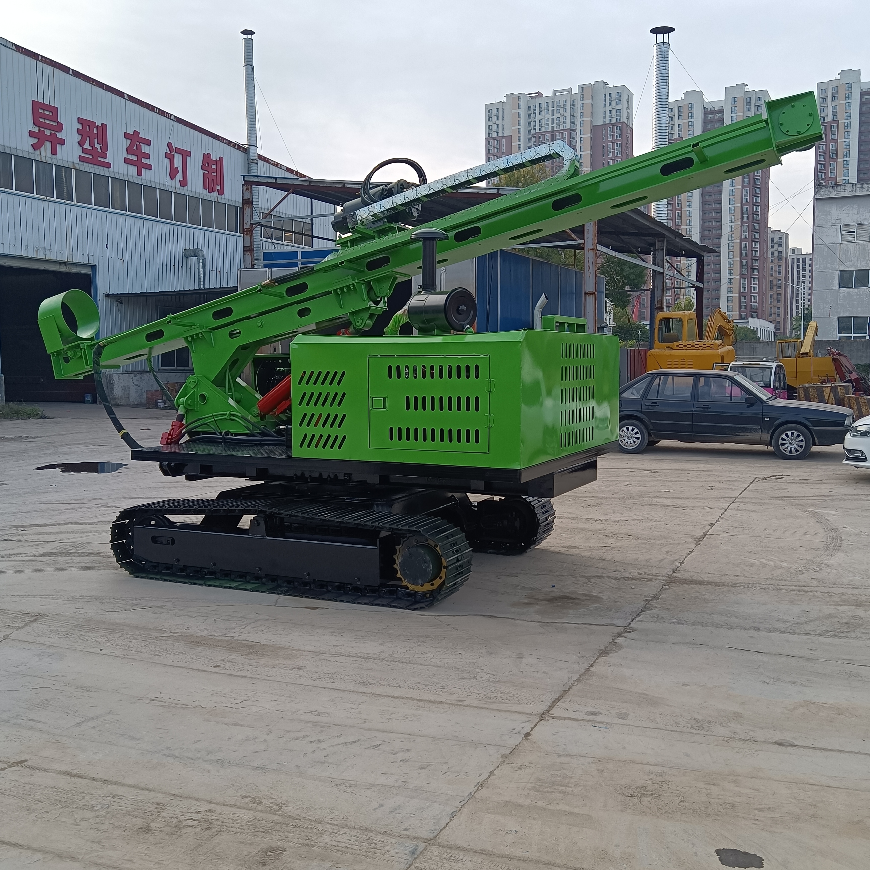 长螺旋打桩机、光伏打桩机、地基打桩机、履带底盘总成、沥青搅拌机、履带运输车、护栏打桩机