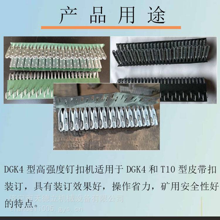 DGK4钉扣机是一款杠杆式的 钉扣机,能钉扣皮带厚度7.5-16的皮带,适用皮带宽度800-1600的皮带。