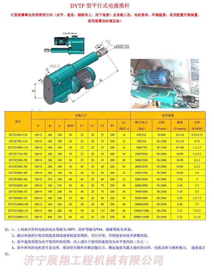 DYTZB1000-50/110-P,DYTZB1000-50/110-X,DYTZB1000-50/110-S,电液推杆