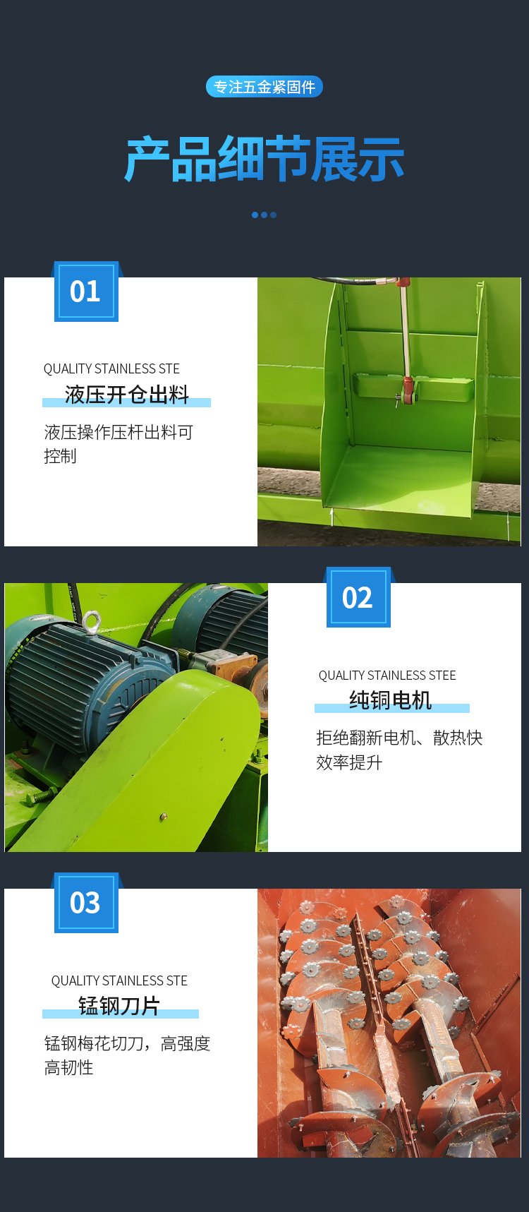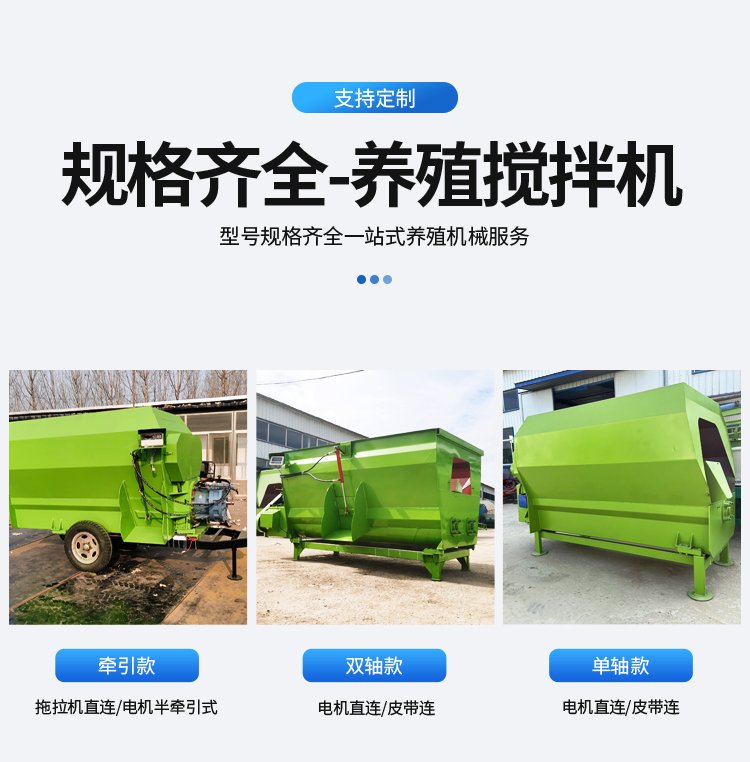 撒料车、清粪车、饲料搅拌机、Tmr粉搅拌机、青贮取料车、皮带输送机、打捆包膜机、饲料粉机、履带式旋耕机、干湿分离机、吸粮机、铡草机