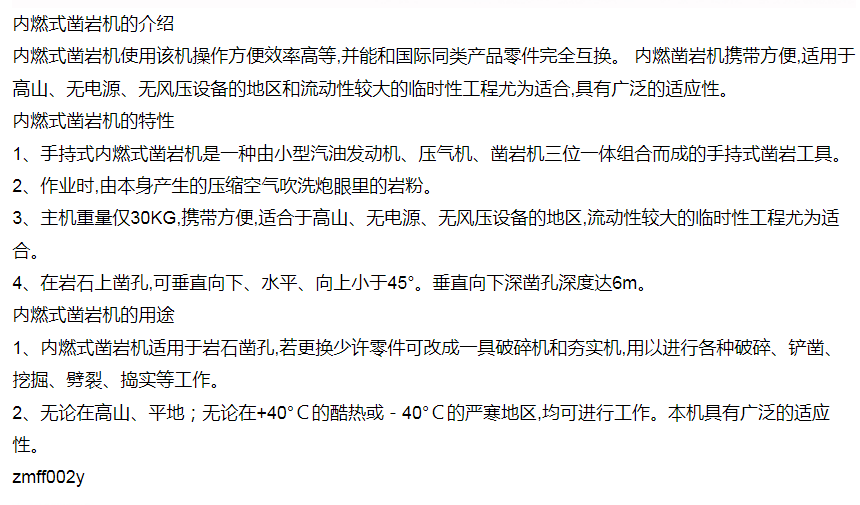 手持式内燃式凿岩机 小型巷道掘进风钻 开采钻孔机