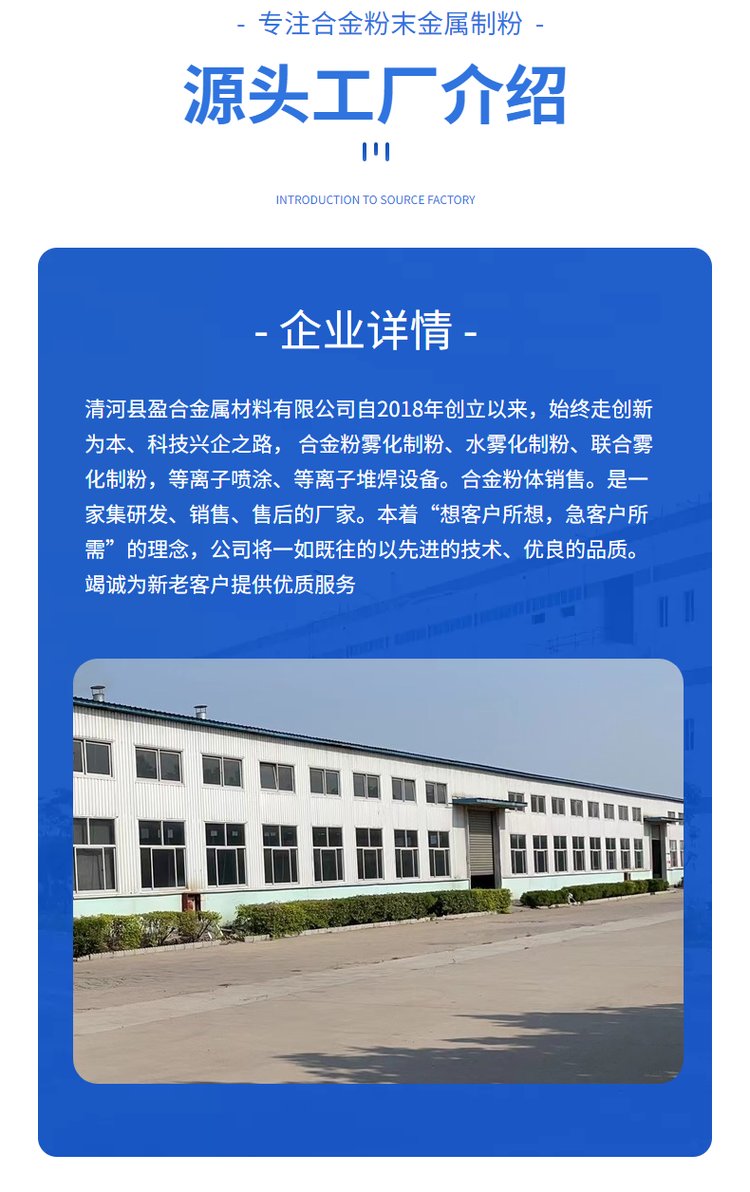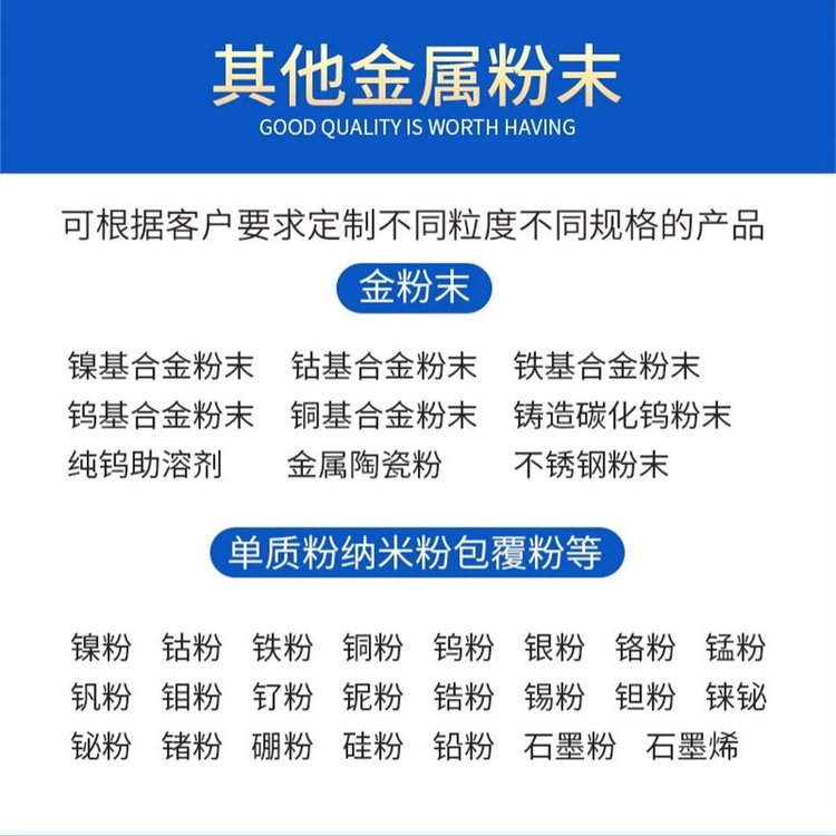 喷涂合金粉末、激光熔覆合金粉末、喷涂耐磨层、铜系列焊丝、铝系列焊丝、不锈钢焊丝、耐磨焊丝、金属耐磨涂层喷涂、冶金高纯金属粉末、镍基合金粉末、铁基合金粉末、钴基合金粉末、碳化钨合金粉末、高纯金属颗粒