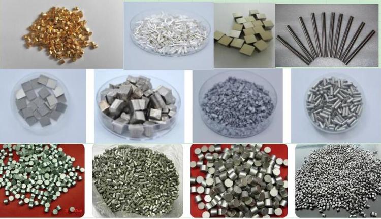 蒸发颗粒镀膜:金属颗粒,陶瓷颗粒,蒸发锥台,坩埚 锥台 钨坩埚 钼坩埚 钽坩埚 铬锥台;二氧化硅颗粒(SiO2); 氧化锌颗粒(ZnO); 二氧化铪颗粒(黑色)(HfO2); 氟化铝颗粒(AlF3) ;氧化镁颗粒(MgO) ;五氧化三钛颗粒(Ti3O5) ; 二氧化锡颗粒(SnO2);氧化钨颗粒(WO3);二氧化铈颗粒(CeO2);氧化钽颗粒(Ta2O5);镍颗粒Ni,铬颗粒Cr,锗颗粒Ge,硅颗粒Si;高纯镁颗粒;铝颗粒Al;铜颗粒Cu;钴颗粒Co
