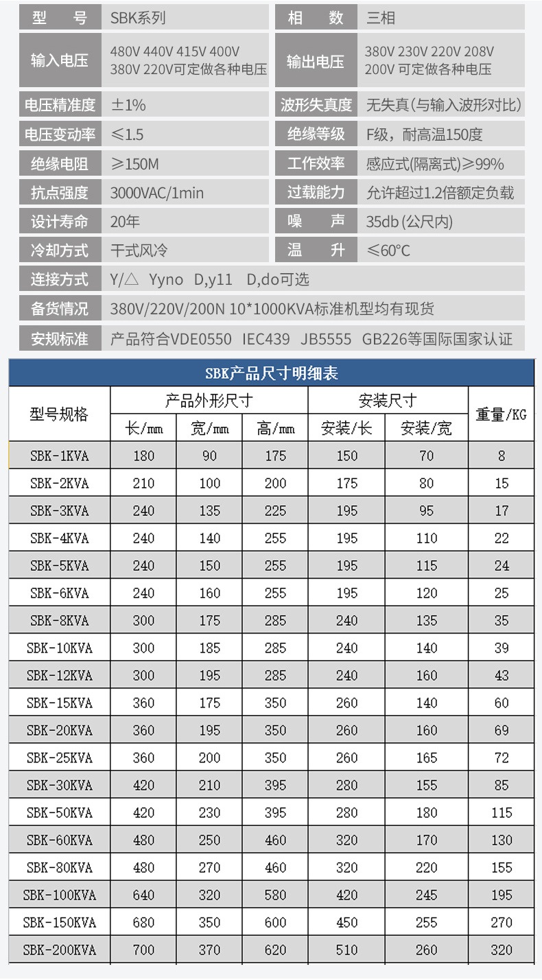 10KVA20kw三相控制隔离变压器380V220V200V伺服电机电源