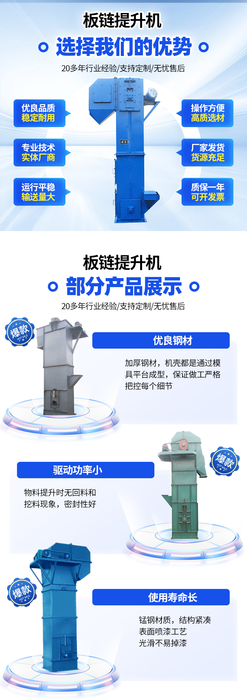 斗式提升机、刮板输送机、垂直振动提升机、皮带机、大倾角皮带输送机、Z字型提升机、螺旋输送机、检验筛、超声波试验筛、鳞板链板输送机